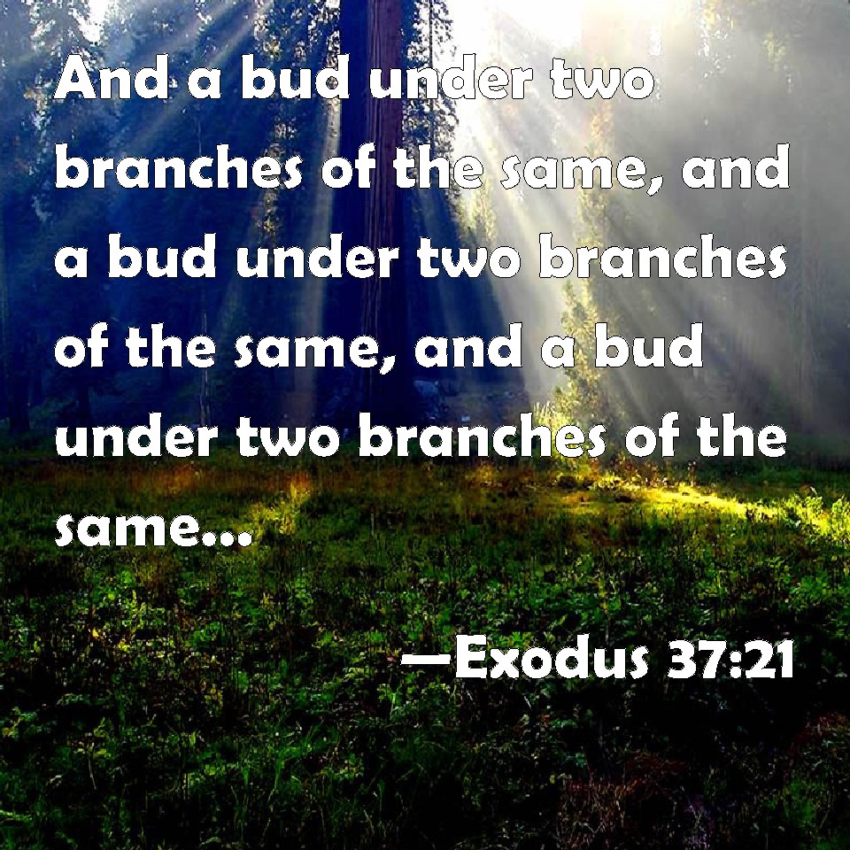 Choose a Background Exodus 37:21 And a bud under two branches of the same, and a bud under two branches of the same, and a bud under two branches of the same, according to the six branches going out of it. KJV: And a knop under two branches of the same, and a knop under two branches of the same, and a knop under two branches of the same, according to the six branches going out of it. DRB: And bowls under two branches in three places, which together make six branches going out from one shaft. DBT: and a knob under two branches thereof, and again a knob under two branches thereof, and again a knob under two branches thereof, for the six branches which went out of it. ERV: and a knop under two branches of one piece with it, and a knop under two branches of one piece with it, and a knop under two branches of one piece with it, for the six branches going out of it. WBT: And a knob under two branches of the same, and a knob under two branches of the same, and a knob under two branches of the same, according to the six branches proceeding from it. WEB: and a bud under two branches of one piece with it, and a bud under two branches of one piece with it, and a bud under two branches of one piece with it, for the six branches going out of it. YLT: and a knop under the two branches of the same, and a knop under the two branches of the same, and a knop under the two branches of the same, are to the six branches which are coming out of it;Links Exodus 37:21 NIV • Exodus 37:21 NLT • Exodus 37:21 ESV • Exodus 37:21 NASB • Exodus 37:21 KJV • Exodus 37:21 Interlinear • Exodus 37:21 Commentaries • Exodus 37:21 Parallel Texts • Exodus 37:21 Bible Apps • Exodus 37:21 Parallel • Bible Hub |