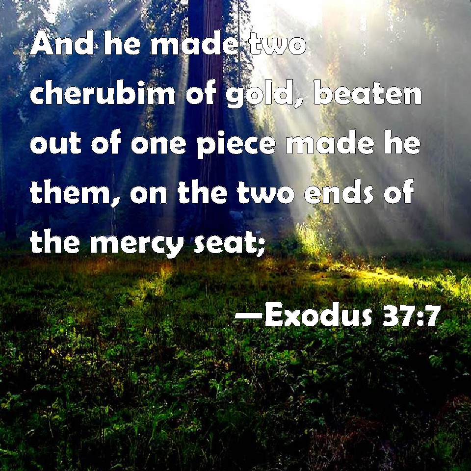 Choose a Background Exodus 37:7 And he made two cherubim of gold, beaten out of one piece made he them, on the two ends of the mercy seat; KJV: And he made two cherubims of gold, beaten out of one piece made he them, on the two ends of the mercy seat; DRB: Two cherubims also of beaten gold, which he set on the two sides of the propitiatory: DBT: And he made two cherubim of gold; of beaten work did he make them, at the two ends of the mercy-seat; ERV: And he made two cherubim of gold; of beaten work made he them, at the two ends of the mercy-seat; WBT: And he made two cherubim of gold, beaten out of one piece he made them, on the two ends of the mercy-seat; WEB: He made two cherubim of gold. He made them of beaten work, at the two ends of the mercy seat; YLT: and he maketh two cherubs of gold, of beaten work he hath made them, at the two ends of the mercy-seat;Links Exodus 37:7 NIV • Exodus 37:7 NLT • Exodus 37:7 ESV • Exodus 37:7 NASB • Exodus 37:7 KJV • Exodus 37:7 Interlinear • Exodus 37:7 Commentaries • Exodus 37:7 Parallel Texts • Exodus 37:7 Bible Apps • Exodus 37:7 Parallel • Bible Hub |
