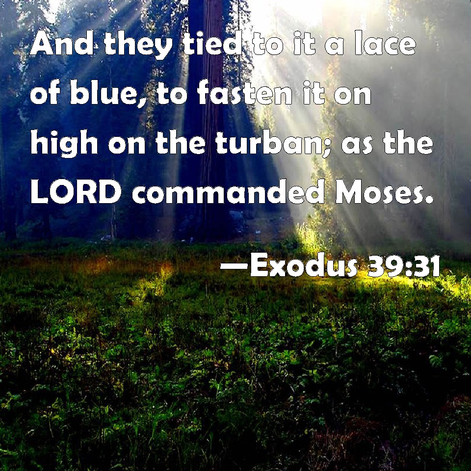 Exodus 39:31 And they tied to it a lace of blue, to fasten it on high on the turban; as the LORD commanded Moses.