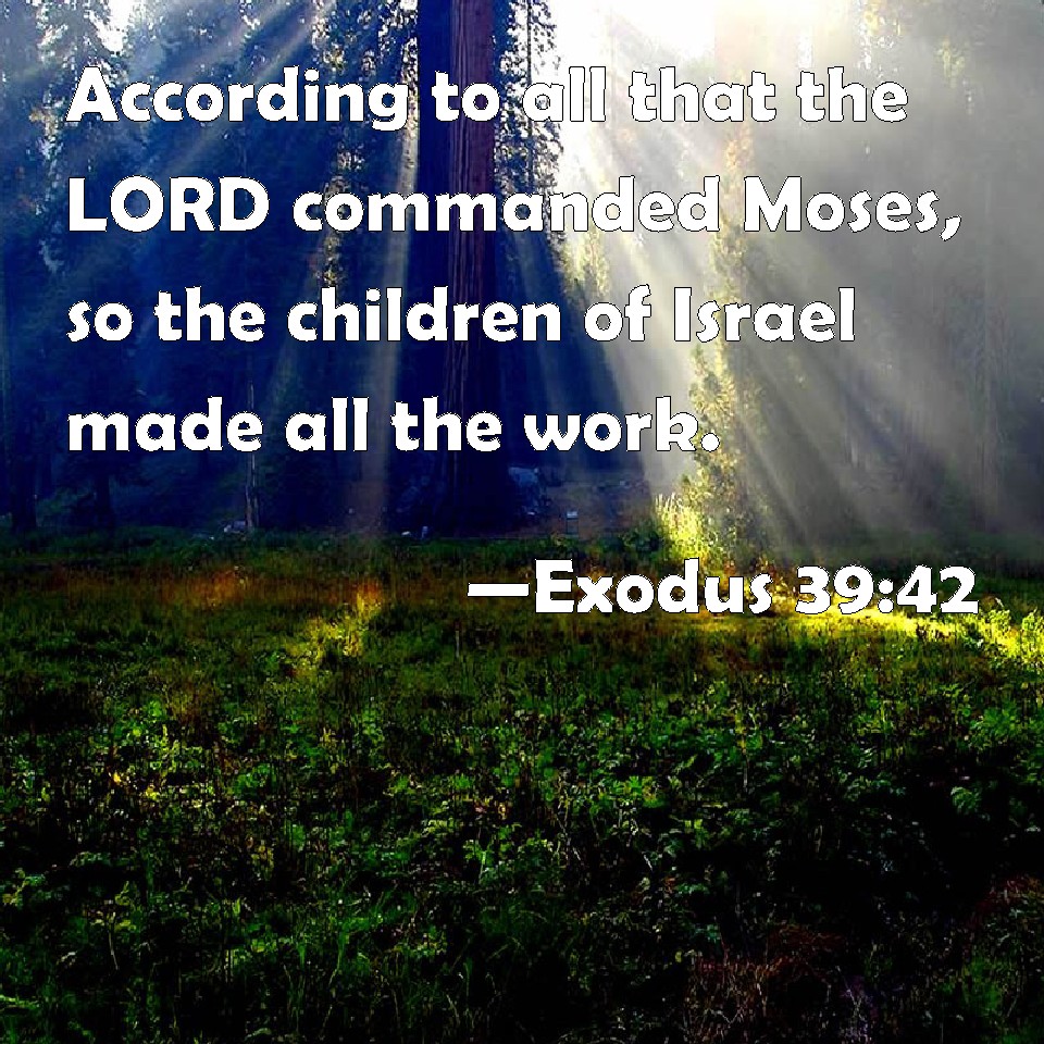 Exodus 39:42 According to all that the LORD commanded Moses, so the children of Israel made all the work.