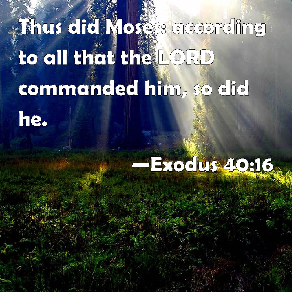 Exodus 40:16 Thus did Moses: according to all that the LORD commanded him, so did he.