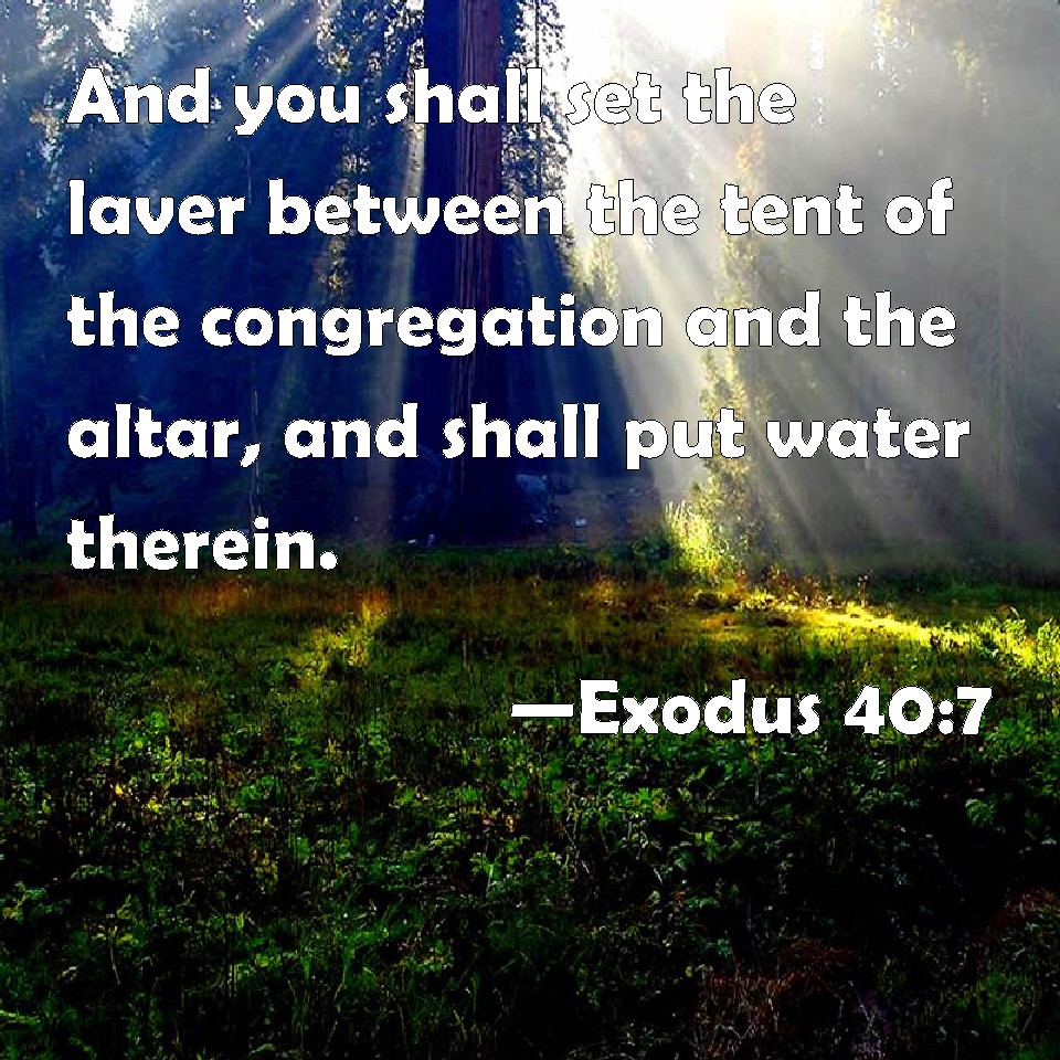 Exodus 40:7 And you shall set the laver between the tent of the congregation and the altar, and shall put water therein.