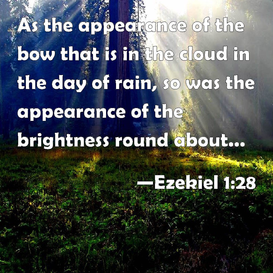 Choose a Background Ezekiel 1:28 As the appearance of the bow that is in the cloud in the day of rain, so was the appearance of the brightness round about. This was the appearance of the likeness of the glory of the LORD. And when I saw it, I fell on my face, and I heard a voice of one that spoke. KJV: As the appearance of the bow that is in the cloud in the day of rain, so was the appearance of the brightness round about. This was the appearance of the likeness of the glory of the LORD. And when I saw it, I fell upon my face, and I heard a voice of one that spake. DRB: As the appearance of the rainbow when it is in a cloud on a rainy day: this was the appearance of the brightness round about. DBT: As the appearance of the bow that is in the cloud in the day of rain, so was the appearance of the brightness round about. This was the appearance of the likeness of the glory of Jehovah. And when I saw, I fell on my face, and I heard a voice of one that spoke. ERV: As the appearance of the bow that is in the cloud in the day of rain, so was the appearance of the brightness round about. This was the appearance of the likeness of the glory of the LORD. And when I saw it, I fell upon my face, and I heard a voice of one that spake. WBT: As the appearance of the bow that is in the cloud in the day of rain, so was the appearance of the brightness around. This was the appearance of the likeness of the glory of the LORD. And when I saw it, I fell upon my face, and I heard a voice of one speaking. WEB: As the appearance of the rainbow that is in the cloud in the day of rain, so was the appearance of the brightness all around. This was the appearance of the likeness of the glory of Yahweh. When I saw it, I fell on my face, and I heard a voice of one that spoke. YLT: As the appearance of the bow that is in a cloud in a day of rain, so is the appearance of the brightness round about.Links Ezekiel 1:28 NIV • Ezekiel 1:28 NLT • Ezekiel 1:28 ESV • Ezekiel 1:28 NASB • Ezekiel 1:28 KJV • Ezekiel 1:28 Interlinear • Ezekiel 1:28 Commentaries • Ezekiel 1:28 Parallel Texts • Ezekiel 1:28 Bible Apps • Ezekiel 1:28 Parallel • Bible Hub |