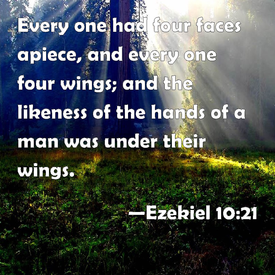 Ezekiel 10:21 Every one had four faces apiece, and every one four wings; and the likeness of the hands of a man was under their wings.