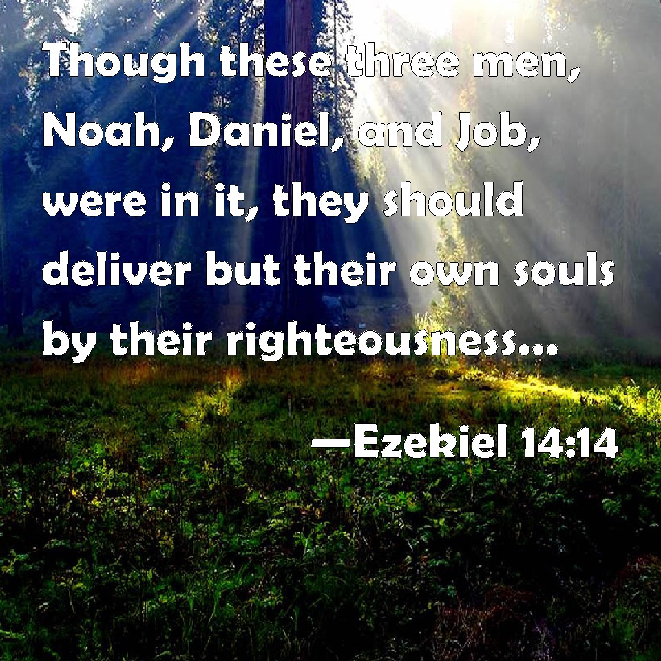 Choose a Background Ezekiel 14:14 Though these three men, Noah, Daniel, and Job, were in it, they should deliver but their own souls by their righteousness, said the Lord GOD. KJV: Though these three men, Noah, Daniel, and Job, were in it, they should deliver but their own souls by their righteousness, saith the Lord GOD. DRB: And if these three men, Noe, Daniel, and Job, shall be in it: they shall deliver their own souls by their justice, saith the Lord of hosts. DBT: though these three men, Noah, Daniel, and Job, should be in it, they should deliver but their own souls by their righteousness, saith the Lord Jehovah. ERV: though these three men, Noah, Daniel, and Job, were in it, they should deliver but their own souls by their righteousness, saith the Lord GOD. WBT: Though these three men, Noah, Daniel, and Job, were in it, they should deliver their own souls only by their righteousness, saith the Lord GOD. WEB: though these three men, Noah, Daniel, and Job, were in it, they should deliver but their own souls by their righteousness, says the Lord Yahweh. YLT: and these three men have been in its midst, Noah, Daniel, and Job — they by their righteousness deliver their own soul — an affirmation of the Lord Jehovah.Links Ezekiel 14:14 NIV • Ezekiel 14:14 NLT • Ezekiel 14:14 ESV • Ezekiel 14:14 NASB • Ezekiel 14:14 KJV • Ezekiel 14:14 Interlinear • Ezekiel 14:14 Commentaries • Ezekiel 14:14 Parallel Texts • Ezekiel 14:14 Bible Apps • Ezekiel 14:14 Parallel • Bible Hub |