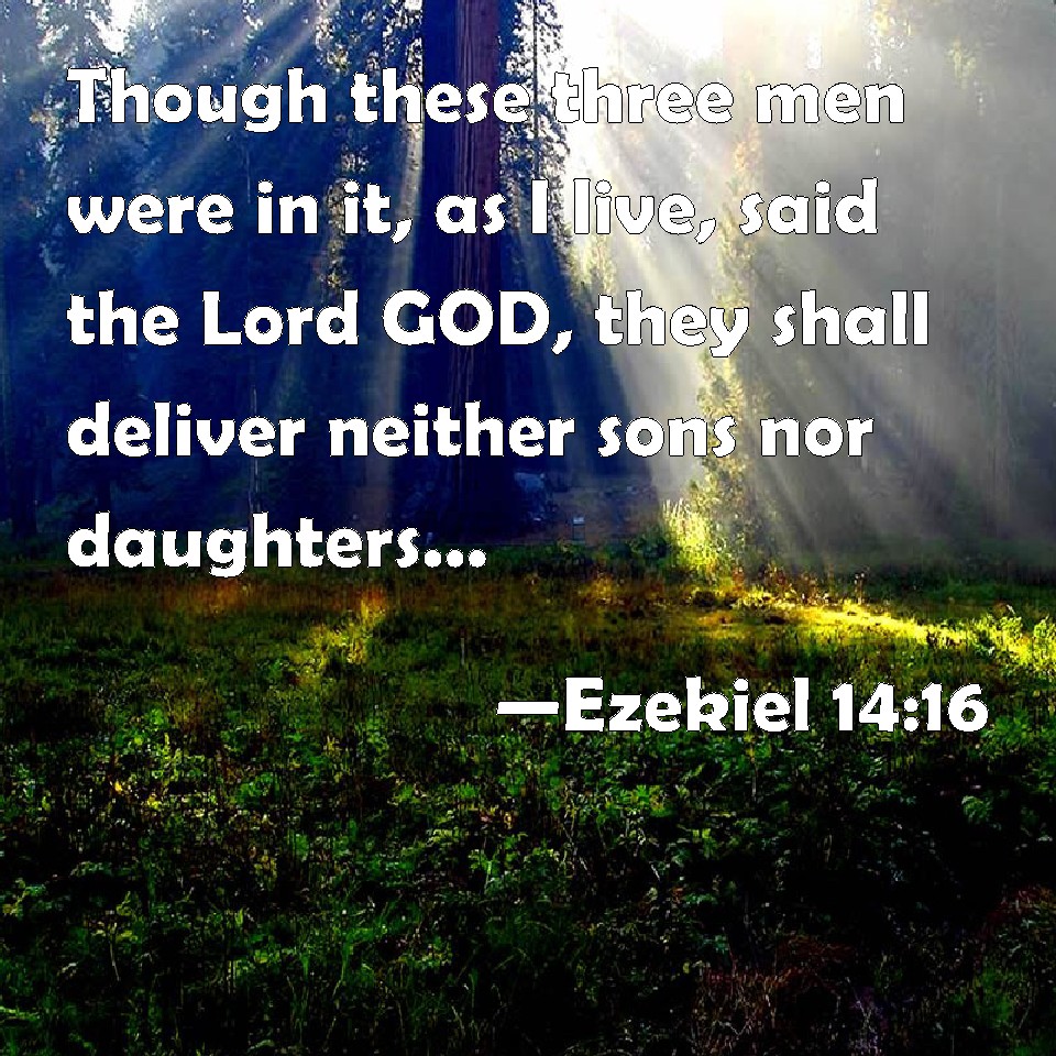 Choose a Background Ezekiel 14:16 Though these three men were in it, as I live, said the Lord GOD, they shall deliver neither sons nor daughters; they only shall be delivered, but the land shall be desolate. KJV: Though these three men were in it, as I live, saith the Lord GOD, they shall deliver neither sons nor daughters; they only shall be delivered, but the land shall be desolate. DRB: If these three men shall be in it, as I live, saith the Lord, they shall deliver neither sons nor daughters: but they only shall be delivered, and the land shall be made desolate. DBT: though these three men should be in it, as I live, saith the Lord Jehovah, they should deliver neither sons nor daughters: they only should be delivered, and the land should be a desolation. ERV: though these three men were in it, as I live, saith the Lord GOD, they shall deliver neither sons nor daughters; they only shall be delivered, but the land shall be desolate. WBT: Though these three men were in it, as I live, saith the Lord GOD, they shall deliver neither sons nor daughters; they only shall be delivered, but the land shall be desolate. WEB: though these three men were in it, as I live, says the Lord Yahweh, they should deliver neither sons nor daughters; they only should be delivered, but the land should be desolate. YLT: these three men in its midst: I live — an affirmation of the Lord Jehovah — neither sons nor daughters do they deliver; they alone are delivered, and the land is a desolation.Links Ezekiel 14:16 NIV • Ezekiel 14:16 NLT • Ezekiel 14:16 ESV • Ezekiel 14:16 NASB • Ezekiel 14:16 KJV • Ezekiel 14:16 Interlinear • Ezekiel 14:16 Commentaries • Ezekiel 14:16 Parallel Texts • Ezekiel 14:16 Bible Apps • Ezekiel 14:16 Parallel • Bible Hub |