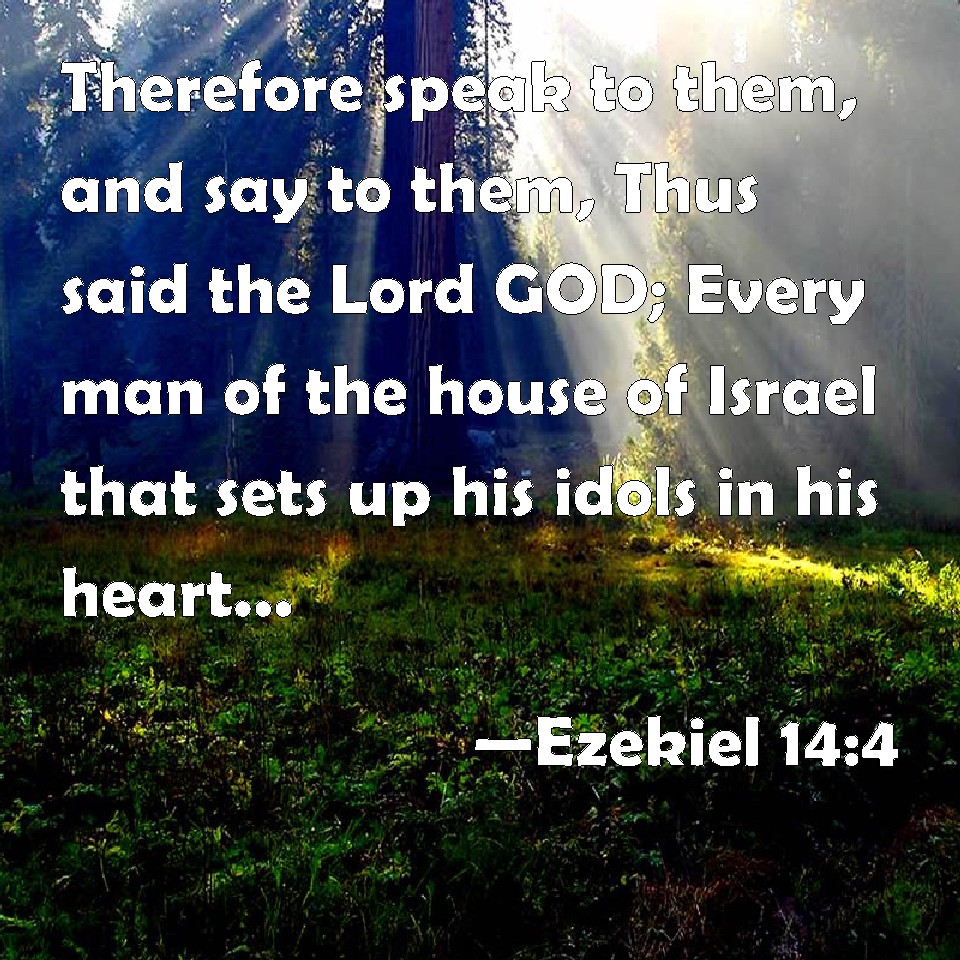 Choose a Background Ezekiel 14:4 Therefore speak to them, and say to them, Thus said the Lord GOD; Every man of the house of Israel that sets up his idols in his heart, and puts the stumbling block of his iniquity before his face, and comes to the prophet; I the LORD will answer him that comes according to the multitude of his idols; KJV: Therefore speak unto them, and say unto them, Thus saith the Lord GOD; Every man of the house of Israel that setteth up his idols in his heart, and putteth the stumblingblock of his iniquity before his face, and cometh to the prophet; I the LORD will answer him that cometh according to the multitude of his idols; DRB: Therefore speak to them, and say to them: Thus saith the Lord God: Man, man of the house of Israel that shall place his uncleannesses in his heart, and set up the stumblingblock of his iniquity before his face, and shall come to the prophet inquiring of me by him: I the Lord will answer him according to the multitude of his uncleannesses: DBT: Therefore speak to them, and say unto them, Thus saith the Lord Jehovah: Every man of the house of Israel that setteth up his idols in his heart, and putteth the stumbling-block of his iniquity before his face, and cometh to the prophet, I Jehovah will answer him according to this, according to the multitude of his idols: ERV: Therefore speak unto them, and say unto them, Thus saith the Lord GOD: Every man of the house of Israel that taketh his idols into his heart, and putteth the stumblingblock of his iniquity before his face, and cometh to the prophet; I the LORD will answer him therein according to the multitude of his idols; WBT: Therefore speak to them, and say to them, Thus saith the Lord GOD; Every man of the house of Israel that setteth up his idols in his heart, and putteth the stumbling-block of his iniquity before his face, and cometh to the prophet; I the LORD will answer him that cometh according to the multitude of his idols; WEB: Therefore speak to them, and tell them, Thus says the Lord Yahweh: Every man of the house of Israel who takes his idols into his heart, and puts the stumbling block of his iniquity before his face, and comes to the prophet; I Yahweh will answer him therein according to the multitude of his idols; YLT: Therefore, speak with them, and thou hast said unto them: Thus said the Lord Jehovah: Every one of the house of Israel who causeth his idols to go up unto his heart, and the stumbling-block of his iniquity setteth over-against his face, and hath gone in unto the prophet — I Jehovah have given an answer to him for this, for the abundance of his idols,Links Ezekiel 14:4 NIV • Ezekiel 14:4 NLT • Ezekiel 14:4 ESV • Ezekiel 14:4 NASB • Ezekiel 14:4 KJV • Ezekiel 14:4 Interlinear • Ezekiel 14:4 Commentaries • Ezekiel 14:4 Parallel Texts • Ezekiel 14:4 Bible Apps • Ezekiel 14:4 Parallel • Bible Hub |