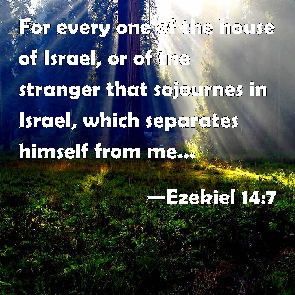 Choose a Background Ezekiel 14:7 For every one of the house of Israel, or of the stranger that sojournes in Israel, which separates himself from me, and sets up his idols in his heart, and puts the stumbling block of his iniquity before his face, and comes to a prophet to inquire of him concerning me; I the LORD will answer him by myself: KJV: For every one of the house of Israel, or of the stranger that sojourneth in Israel, which separateth himself from me, and setteth up his idols in his heart, and putteth the stumblingblock of his iniquity before his face, and cometh to a prophet to inquire of him concerning me; I the LORD will answer him by myself: DRB: For every man of the house of Israel, and every stranger among the proselytes in Israel, if he separate himself from me, and place his idols in his heart, and set the stumblingblock of his iniquity before his face, and come to the prophet to inquire of me by him: I the Lord will answer him by myself. DBT: For every one of the house of Israel, or of the strangers that sojourn in Israel, who separateth himself from me, and setteth up his idols in his heart, and putteth the stumbling-block of his iniquity before his face, and cometh to the prophet to inquire of me by him, I Jehovah will answer him by myself; ERV: For every one of the house of Israel, or of the strangers that sojourn in Israel, which separateth himself from me, and taketh his idols into his heart, and putteth the stumblingblock of his iniquity before his face, and cometh to the prophet to inquire for himself of me; I the LORD will answer him by myself: WBT: For every one of the house of Israel, or of the stranger that sojourneth in Israel, who separateth himself from me, and setteth up his idols in his heart, and putteth the stumbling-block of his iniquity before his face, and cometh to a prophet to inquire of him concerning me; I the LORD will answer him by myself: WEB: For everyone of the house of Israel, or of the strangers who live in Israel, who separates himself from me, and takes his idols into his heart, and puts the stumbling block of his iniquity before his face, and comes to the prophet to inquire for himself of me; I Yahweh will answer him by myself: YLT: for every one of the house of Israel, and of the sojourners who doth sojourn in Israel, who is separated from after Me, and doth cause his idols to go up unto his heart, and the stumbling-block of his iniquity setteth over-against his face, and hath come in unto the prophet to inquire of him concerning Me, I, Jehovah, have answered him for Myself;Links Ezekiel 14:7 NIV • Ezekiel 14:7 NLT • Ezekiel 14:7 ESV • Ezekiel 14:7 NASB • Ezekiel 14:7 KJV • Ezekiel 14:7 Interlinear • Ezekiel 14:7 Commentaries • Ezekiel 14:7 Parallel Texts • Ezekiel 14:7 Bible Apps • Ezekiel 14:7 Parallel • Bible Hub |
