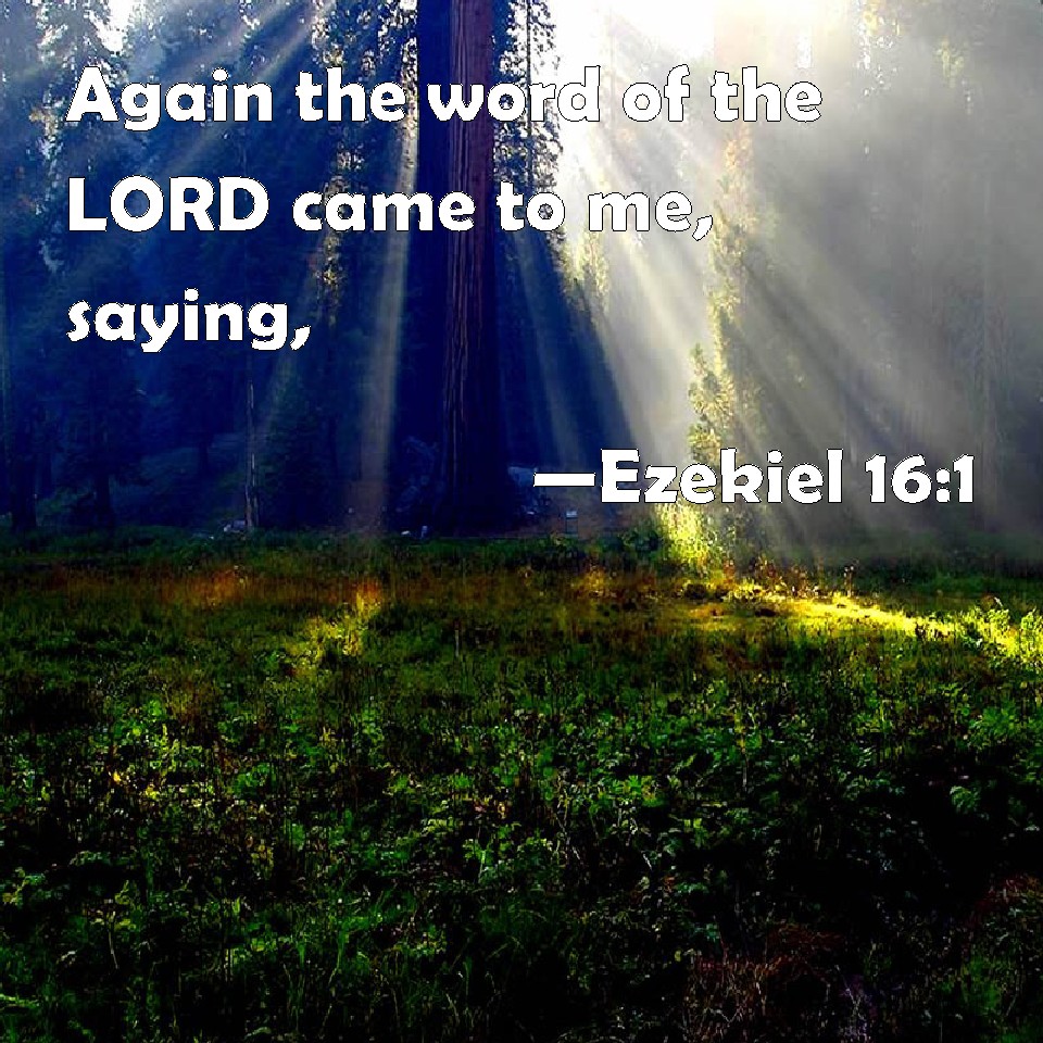 Choose a Background Ezekiel 16:1 Again the word of the LORD came to me, saying, KJV: Again the word of the LORD came unto me, saying, DRB: And the word of the Lord came to me, saying: DBT: And the word of Jehovah came unto me, saying, ERV: Again the word of the LORD came unto me, saying, WBT: Again the word of the LORD came to me, saying, WEB: Again the word of Yahweh came to me, saying, YLT: And there is a word of Jehovah unto me, saying,Links Ezekiel 16:1 NIV • Ezekiel 16:1 NLT • Ezekiel 16:1 ESV • Ezekiel 16:1 NASB • Ezekiel 16:1 KJV • Ezekiel 16:1 Interlinear • Ezekiel 16:1 Commentaries • Ezekiel 16:1 Parallel Texts • Ezekiel 16:1 Bible Apps • Ezekiel 16:1 Parallel • Bible Hub |
