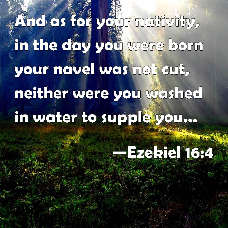Choose a Background Ezekiel 16:4 And as for your nativity, in the day you were born your navel was not cut, neither were you washed in water to supple you; you were not salted at all, nor swaddled at all. KJV: And as for thy nativity, in the day thou wast born thy navel was not cut, neither wast thou washed in water to supple thee; thou wast not salted at all, nor swaddled at all. DRB: And when thou wast born, in the day of thy nativity thy navel wits not cut, neither wast thou washed with water for thy health, nor salted with salt, nor swaddled with clouts. DBT: And as for thy nativity, in the day thou wast born thy navel was not cut, neither wast thou washed in water for cleansing; thou wast not rubbed with salt at all, nor swaddled at all. ERV: And as for thy nativity, in the day thou wast born thy navel was not cut, neither wast thou washed in water to cleanse thee; thou wast not salted at all, nor swaddled at all. WBT: And as for thy nativity, in the day thou wast born thy navel was not cut, neither wast thou washed in water to supple thee; thou wast not salted at all, nor swaddled at all. WEB: As for your birth, in the day you were born your navel was not cut, neither were you washed in water to cleanse you; you weren't salted at all, nor swaddled at all. YLT: As to thy nativity, in the day thou wast born, Thou — thy navel hath not been cut, And in water thou wast not washed for ease, And thou hast not been salted at all, And thou hast not been swaddled at all.Links Ezekiel 16:4 NIV • Ezekiel 16:4 NLT • Ezekiel 16:4 ESV • Ezekiel 16:4 NASB • Ezekiel 16:4 KJV • Ezekiel 16:4 Interlinear • Ezekiel 16:4 Commentaries • Ezekiel 16:4 Parallel Texts • Ezekiel 16:4 Bible Apps • Ezekiel 16:4 Parallel • Bible Hub |