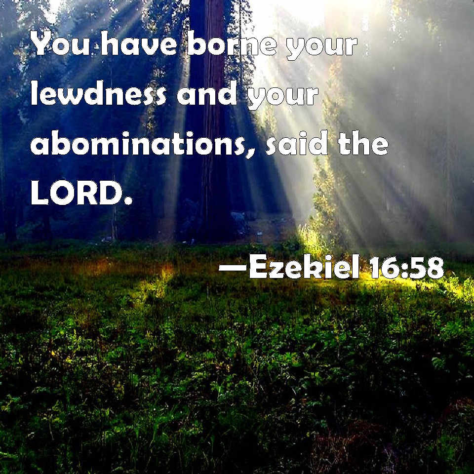 Choose a Background Ezekiel 16:58 You have borne your lewdness and your abominations, said the LORD. KJV: Thou hast borne thy lewdness and thine abominations, saith the LORD. DRB: Thou hast borne thy wickedness, and thy disgrace, saith the Lord God. DBT: Thy lewdness and thine abominations, thou bearest them, saith Jehovah. ERV: Thou hast borne thy lewdness and thine abominations, saith the LORD. WBT: Thou hast borne thy lewdness and thy abominations, saith the LORD. WEB: You have borne your lewdness and your abominations, says Yahweh. YLT: Thy devices and thine abominations, Thou hast borne them, an affirmation of Jehovah.Links Ezekiel 16:58 NIV • Ezekiel 16:58 NLT • Ezekiel 16:58 ESV • Ezekiel 16:58 NASB • Ezekiel 16:58 KJV • Ezekiel 16:58 Interlinear • Ezekiel 16:58 Commentaries • Ezekiel 16:58 Parallel Texts • Ezekiel 16:58 Bible Apps • Ezekiel 16:58 Parallel • Bible Hub |