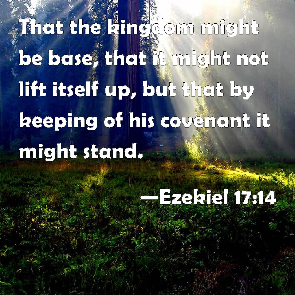 Choose a Background Ezekiel 17:14 That the kingdom might be base, that it might not lift itself up, but that by keeping of his covenant it might stand. KJV: That the kingdom might be base, that it might not lift itself up, but that by keeping of his covenant it might stand. DRB: That it may be a low kingdom and not lift itself up, but keep his covenant, and observe it. DBT: that the kingdom might be abased, that it might not lift itself up, that it might keep his covenant in order to stand. ERV: that the kingdom might be base, that it might not lift itself up, but that by keeping of his covenant it might stand. WBT: That the kingdom might be base, that it might not lift itself up, but that by keeping his covenant it might stand. WEB: that the kingdom might be base, that it might not lift itself up, but that by keeping his covenant it might stand. YLT: That the kingdom may be humble, That it may not lift itself up, To keep his covenant — that it may stand.Links Ezekiel 17:14 NIV • Ezekiel 17:14 NLT • Ezekiel 17:14 ESV • Ezekiel 17:14 NASB • Ezekiel 17:14 KJV • Ezekiel 17:14 Interlinear • Ezekiel 17:14 Commentaries • Ezekiel 17:14 Parallel Texts • Ezekiel 17:14 Bible Apps • Ezekiel 17:14 Parallel • Bible Hub |