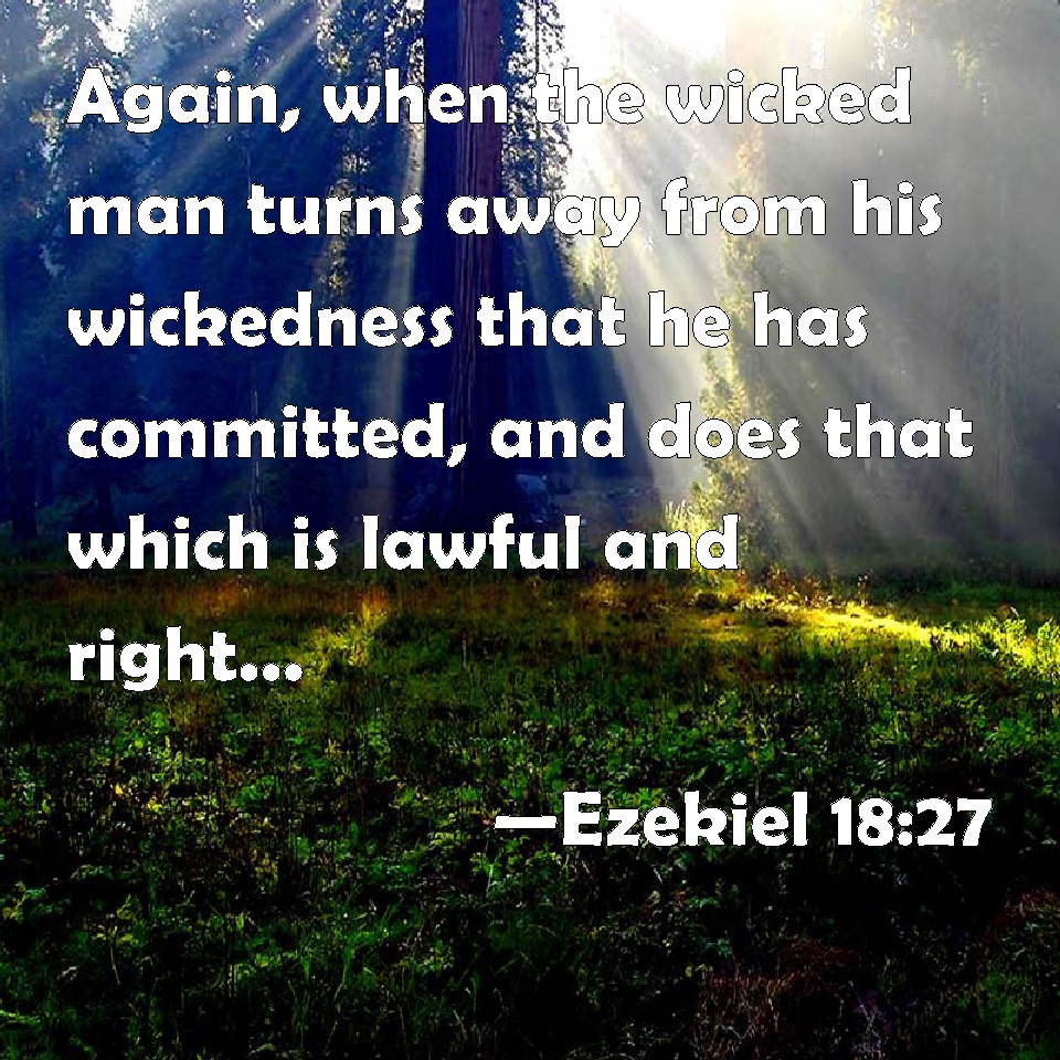 Choose a Background Ezekiel 18:27 Again, when the wicked man turns away from his wickedness that he has committed, and does that which is lawful and right, he shall save his soul alive. KJV: Again, when the wicked man turneth away from his wickedness that he hath committed, and doeth that which is lawful and right, he shall save his soul alive. DRB: And when the wicked turneth himself away from his wickedness, which he hath wrought, and doeth judgment, and justice: he shall save his soul alive. DBT: And when the wicked turneth from his wickedness which he hath committed, and doeth judgment and justice, he shall keep his soul alive. ERV: Again, when the wicked man turneth away from his wickedness that he hath committed, and doeth that which is lawful and right, he shall save his soul alive. WBT: Again, when a wicked man turneth away from his wickedness that he hath committed, and doeth that which is lawful and right, he shall save his soul alive. WEB: Again, when the wicked man turns away from his wickedness that he has committed, and does that which is lawful and right, he shall save his soul alive. YLT: And in the turning back of the wicked From his wickedness that he hath done, And he doth judgment and righteousness, He his soul doth keep alive.Links Ezekiel 18:27 NIV • Ezekiel 18:27 NLT • Ezekiel 18:27 ESV • Ezekiel 18:27 NASB • Ezekiel 18:27 KJV • Ezekiel 18:27 Interlinear • Ezekiel 18:27 Commentaries • Ezekiel 18:27 Parallel Texts • Ezekiel 18:27 Bible Apps • Ezekiel 18:27 Parallel • Bible Hub |