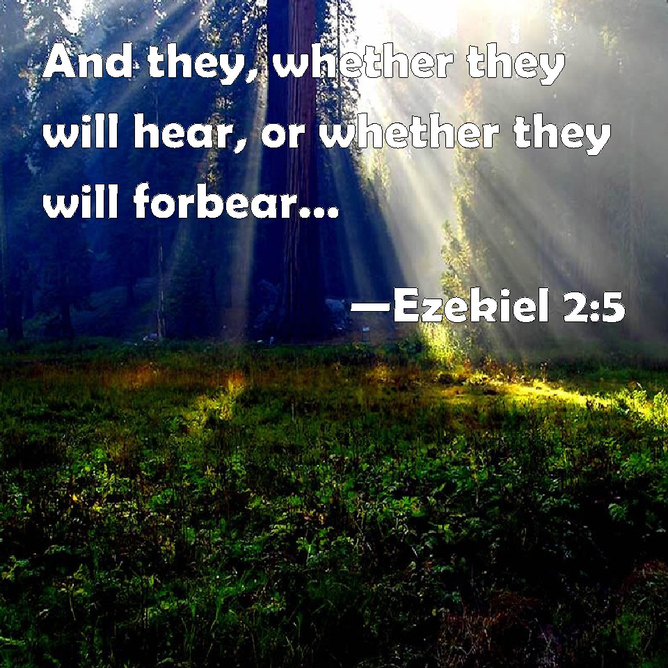 Choose a Background Ezekiel 2:5 And they, whether they will hear, or whether they will forbear, (for they are a rebellious house,) yet shall know that there has been a prophet among them. KJV: And they, whether they will hear, or whether they will forbear, (for they are a rebellious house,) yet shall know that there hath been a prophet among them. DRB: If so be they at least will hear, and if so be they will forbear, for they are a provoking house: and they shall know that there hath been a prophet in the midst of them. DBT: And they, whether they will hear or whether they will forbear for they are a rebellious house yet shall they know that there hath been a prophet among them. ERV: And they, whether they will hear, or whether they will forbear, (for they are a rebellious house,) yet shall know that there hath been a prophet among them. WBT: And they, whether they will hear, or whether they will forbear, (for they are a rebellious house,) yet shall know that there hath been a prophet among them. WEB: They, whether they will hear, or whether they will forbear, (for they are a rebellious house), yet shall know that there has been a prophet among them. YLT: and they — whether they hear, or whether they forbear, for a rebellious house they are — have known that a prophet hath been in their midst.Links Ezekiel 2:5 NIV • Ezekiel 2:5 NLT • Ezekiel 2:5 ESV • Ezekiel 2:5 NASB • Ezekiel 2:5 KJV • Ezekiel 2:5 Interlinear • Ezekiel 2:5 Commentaries • Ezekiel 2:5 Parallel Texts • Ezekiel 2:5 Bible Apps • Ezekiel 2:5 Parallel • Bible Hub |