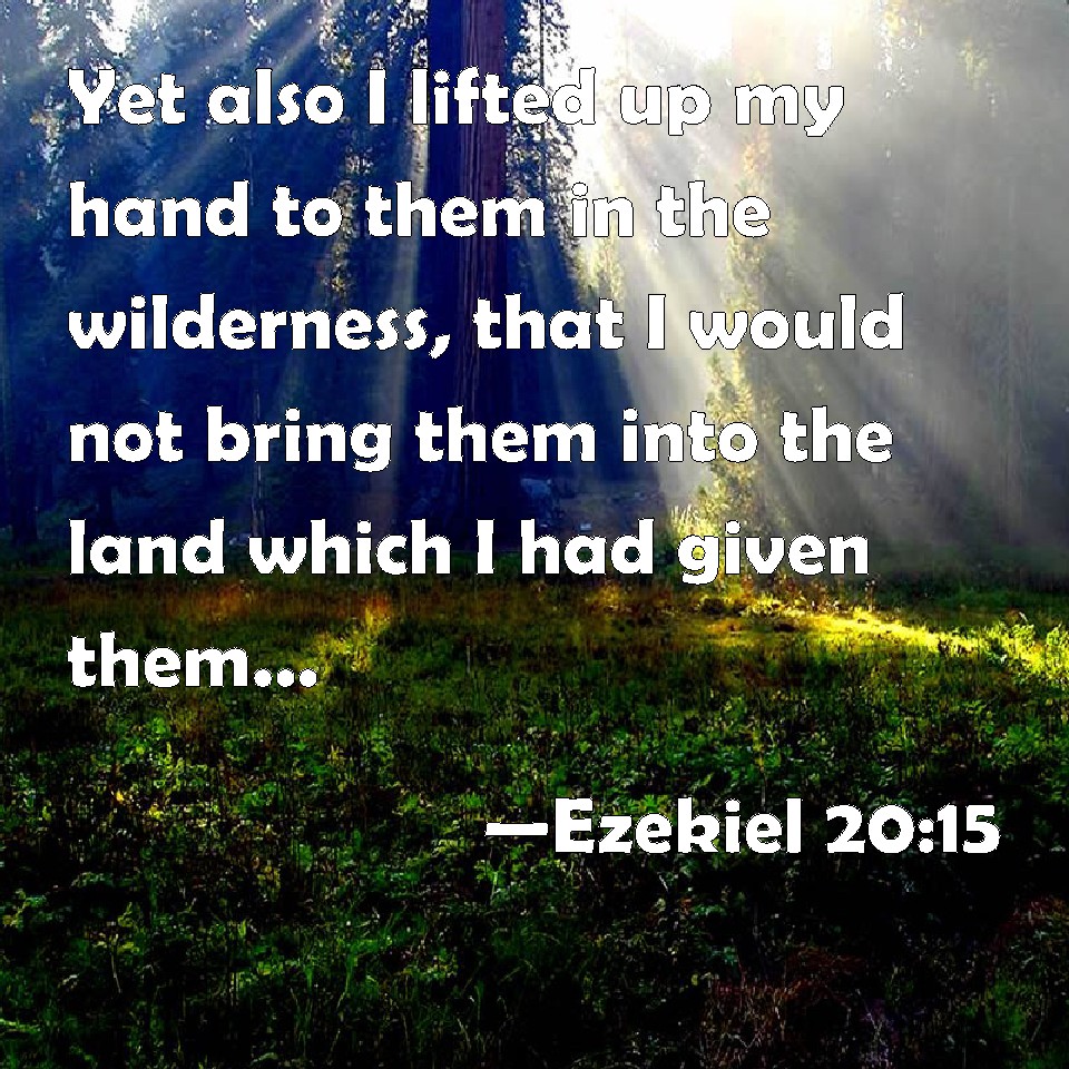 Choose a Background Ezekiel 20:15 Yet also I lifted up my hand to them in the wilderness, that I would not bring them into the land which I had given them, flowing with milk and honey, which is the glory of all lands; KJV: Yet also I lifted up my hand unto them in the wilderness, that I would not bring them into the land which I had given them, flowing with milk and honey, which is the glory of all lands; DRB: So I lifted up my hand over them in the desert, not to bring them into the land which I had given them flowing with milk and honey, the best of all lands. DBT: And I also lifted up my hand unto them in the wilderness, that I would not bring them into the land that I had given them, flowing with milk and honey, which is the ornament of all lands; ERV: Moreover also I lifted up my hand unto them in the wilderness, that I would not bring them into the land which I had given them, flowing with milk and honey, which is the glory of all lands; WBT: Yet also I lifted up my hand to them in the wilderness, that I would not bring them into the land which I had given them, flowing with milk and honey, which is the glory of all lands; WEB: Moreover also I swore to them in the wilderness, that I would not bring them into the land which I had given them, flowing with milk and honey, which is the glory of all lands; YLT: And also, I, I have lifted up My hand to them in the wilderness, Not to bring them in to the land that I had given, Flowing with milk and honey, A beauty it is to all the lands,Links Ezekiel 20:15 NIV • Ezekiel 20:15 NLT • Ezekiel 20:15 ESV • Ezekiel 20:15 NASB • Ezekiel 20:15 KJV • Ezekiel 20:15 Interlinear • Ezekiel 20:15 Commentaries • Ezekiel 20:15 Parallel Texts • Ezekiel 20:15 Bible Apps • Ezekiel 20:15 Parallel • Bible Hub |