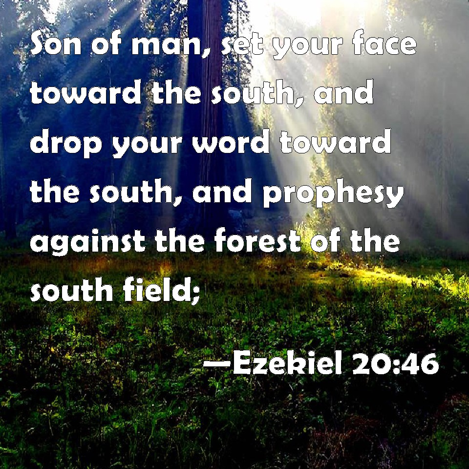 Choose a Background Ezekiel 20:46 Son of man, set your face toward the south, and drop your word toward the south, and prophesy against the forest of the south field; KJV: Son of man, set thy face toward the south, and drop thy word toward the south, and prophesy against the forest of the south field; DRB: Son of man, set thy face against the way of the south, and drop towards the south, and prophesy against the forest of the south field. DBT: Son of man, set thy face toward the south, and drop words against the south, and prophesy against the forest of the south field; ERV: Son of man, set thy face toward the south, and drop thy word toward the south, and prophesy against the forest of the field in the South; WBT: Son of man, set thy face towards the south, and drop thy word towards the south, and prophesy against the forest of the south field; WEB: Son of man, set your face toward the south, and drop [your word] toward the south, and prophesy against the forest of the field in the South; YLT: Son of man, set thy face the way of Teman, and prophesy unto the south, and prophesy unto the forest of the field — the south;Links Ezekiel 20:46 NIV • Ezekiel 20:46 NLT • Ezekiel 20:46 ESV • Ezekiel 20:46 NASB • Ezekiel 20:46 KJV • Ezekiel 20:46 Interlinear • Ezekiel 20:46 Commentaries • Ezekiel 20:46 Parallel Texts • Ezekiel 20:46 Bible Apps • Ezekiel 20:46 Parallel • Bible Hub |