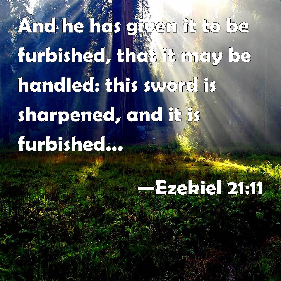 Choose a Background Ezekiel 21:11 And he has given it to be furbished, that it may be handled: this sword is sharpened, and it is furbished, to give it into the hand of the slayer. KJV: And he hath given it to be furbished, that it may be handled: this sword is sharpened, and it is furbished, to give it into the hand of the slayer. DRB: And I have given it to be furbished, that it may be handled: this sword is sharpened, and it is furbished, that it may be in the hand of the slayer. DBT: And he hath given it to be furbished that it may be handled. The sword, it is sharpened, and it is furbished to give it into the hand of the slayer. ERV: And it is given to be furbished, that it may be handled: the sword, it is sharpened, yea, it is furbished, to give it into the hand of the slayer. WBT: And he hath given it to be furbished, that it may be handled: the sword is sharpened, and it is furbished, to give it into the hand of the slayer. WEB: It is given to be furbished, that it may be handled: the sword, it is sharpened, yes, it is furbished, to give it into the hand of the killer. YLT: And he giveth it for polishing, For laying hold of by the hand. It is sharpened — the sword — and polished, To give it into the hand of a slayer.Links Ezekiel 21:11 NIV • Ezekiel 21:11 NLT • Ezekiel 21:11 ESV • Ezekiel 21:11 NASB • Ezekiel 21:11 KJV • Ezekiel 21:11 Interlinear • Ezekiel 21:11 Commentaries • Ezekiel 21:11 Parallel Texts • Ezekiel 21:11 Bible Apps • Ezekiel 21:11 Parallel • Bible Hub |
