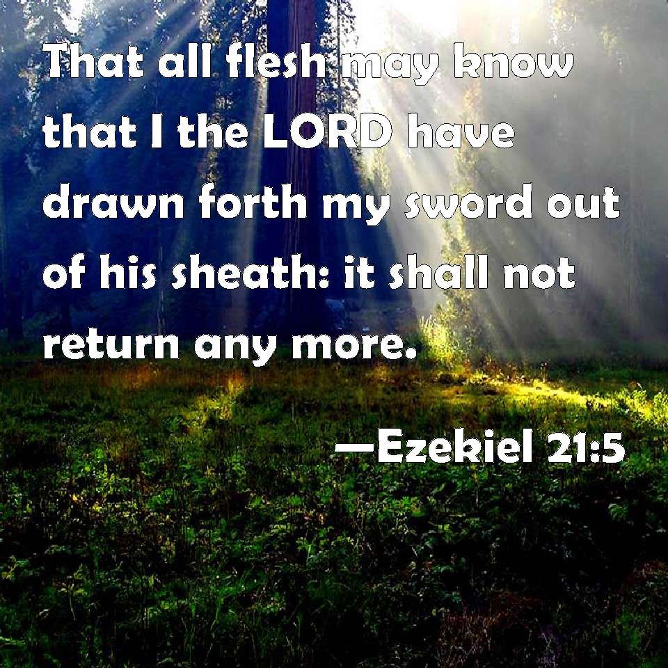 Ezekiel 21:5 That all flesh may know that I the LORD have drawn forth my sword out of his sheath: it shall not return any more.