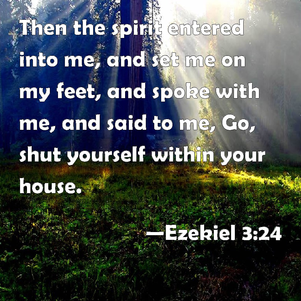 Choose a Background Ezekiel 3:24 Then the spirit entered into me, and set me on my feet, and spoke with me, and said to me, Go, shut yourself within your house. KJV: Then the spirit entered into me, and set me upon my feet, and spake with me, and said unto me, Go, shut thyself within thine house. DRB: And the spirit entered into me, and set me upon my feet: and he spoke to me, and said to me: Go in; and shut thyself up in the midst of thy house. DBT: And the Spirit entered into me, and set me upon my feet; and he spoke with me, and said unto me, Go, shut thyself within thy house. ERV: Then the spirit entered into me, and set me upon my feet; and he spake with me, and said unto me, Go, shut thyself within thine house. WBT: Then the spirit entered into me, and set me upon my feet, and spoke with me, and said to me, Go, shut thyself within thy house. WEB: Then the Spirit entered into me, and set me on my feet; and he spoke with me, and said to me, Go, shut yourself inside your house. YLT: And come into me doth a spirit, and causeth me to stand on my feet, and He speaketh with me, and saith unto me, 'Go in, be shut up in the midst of thy house.Links Ezekiel 3:24 NIV • Ezekiel 3:24 NLT • Ezekiel 3:24 ESV • Ezekiel 3:24 NASB • Ezekiel 3:24 KJV • Ezekiel 3:24 Interlinear • Ezekiel 3:24 Commentaries • Ezekiel 3:24 Parallel Texts • Ezekiel 3:24 Bible Apps • Ezekiel 3:24 Parallel • Bible Hub |