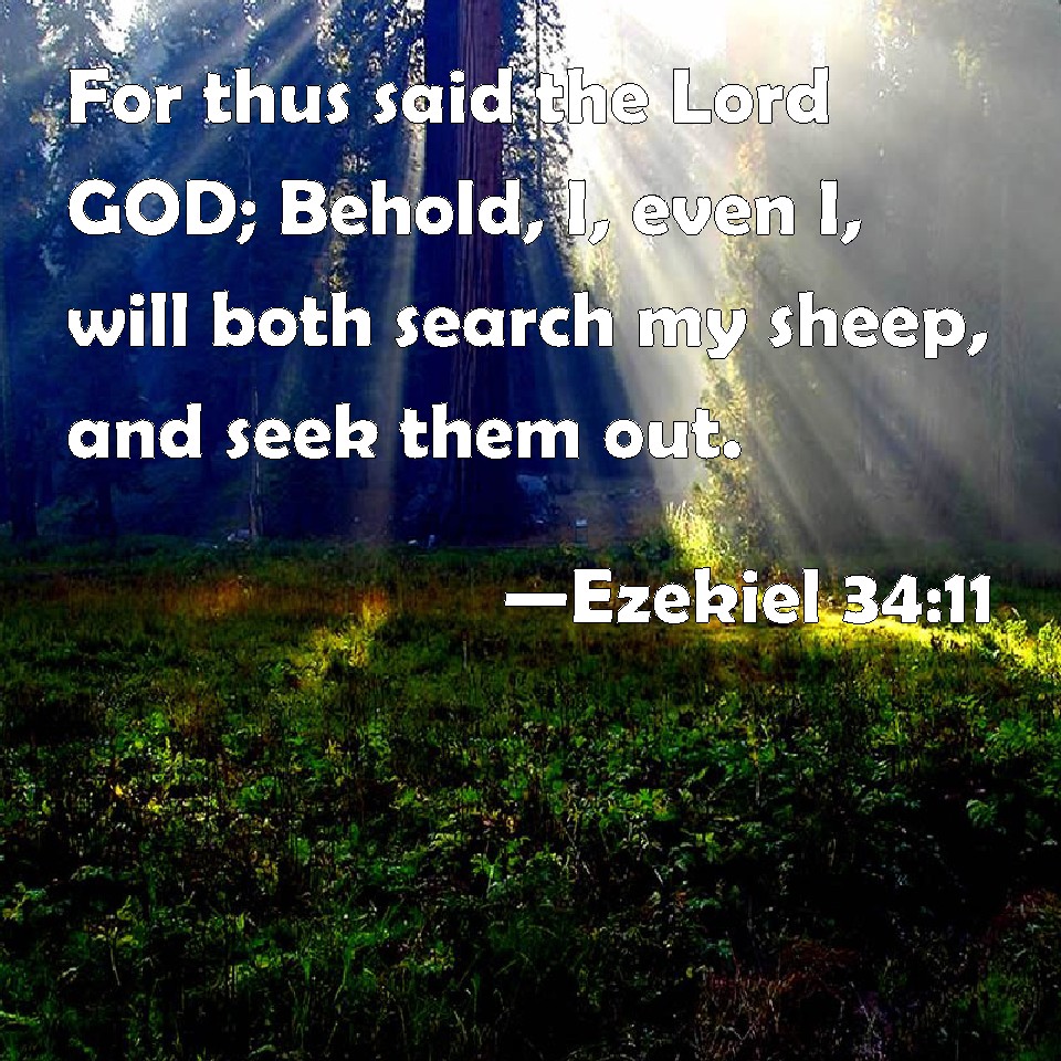 Choose a Background Ezekiel 34:11 For thus said the Lord GOD; Behold, I, even I, will both search my sheep, and seek them out. KJV: For thus saith the Lord GOD; Behold, I, even I, will both search my sheep, and seek them out. DRB: For thus saith the Lord God: Behold I myself will seek my sheep, and will visit them. DBT: For thus saith the Lord Jehovah: Behold I, even I, will both search for my sheep, and tend them. ERV: For thus saith the Lord GOD: Behold, I myself, even I, will search for my sheep, and will seek them out. WBT: For thus saith the Lord GOD; Behold, I even I, will both search for my sheep, and seek them out. WEB: For thus says the Lord Yahweh: Behold, I myself, even I, will search for my sheep, and will seek them out. YLT: For thus said the Lord Jehovah: Lo, I — even I, have required My flock, And I have sought it out.Links Ezekiel 34:11 NIV • Ezekiel 34:11 NLT • Ezekiel 34:11 ESV • Ezekiel 34:11 NASB • Ezekiel 34:11 KJV • Ezekiel 34:11 Interlinear • Ezekiel 34:11 Commentaries • Ezekiel 34:11 Parallel Texts • Ezekiel 34:11 Bible Apps • Ezekiel 34:11 Parallel • Bible Hub |