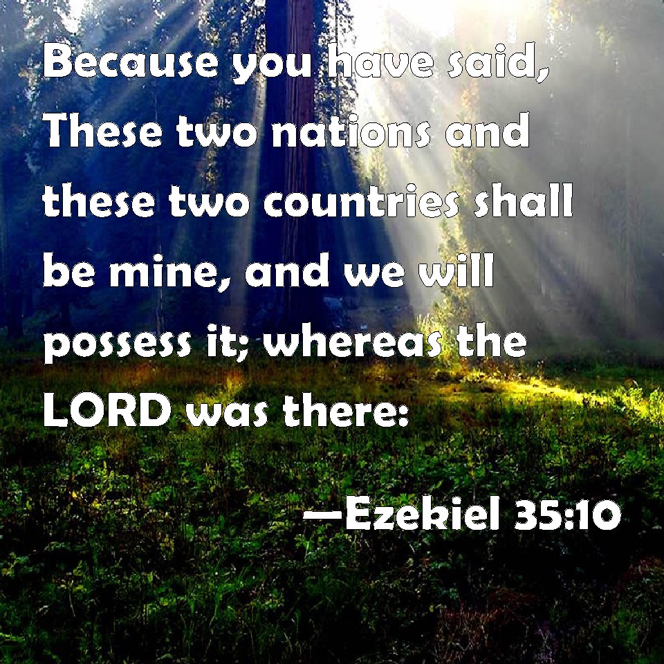 Choose a Background Ezekiel 35:10 Because you have said, These two nations and these two countries shall be mine, and we will possess it; whereas the LORD was there: KJV: Because thou hast said, These two nations and these two countries shall be mine, and we will possess it; whereas the LORD was there: DRB: Because thou hast said: The two nations, and the two lands shall be mine, and I will possess them by inheritance: whereas the Lord was there. DBT: Because thou hast said, These two nations and these two countries shall be mine, and we will possess it, whereas Jehovah was there: ERV: Because thou hast said, These two nations and these two countries shall be mine, and we will possess it; whereas the LORD was there: WBT: Because thou hast said, These two nations and these two countries shall be mine, and we will possess it; whereas the LORD was there: WEB: Because you have said, These two nations and these two countries shall be mine, and we will possess it; whereas Yahweh was there: YLT: Because of thy saying: The two nations and the two lands are mine, and we have possessed it, And Jehovah hath been there;Links Ezekiel 35:10 NIV • Ezekiel 35:10 NLT • Ezekiel 35:10 ESV • Ezekiel 35:10 NASB • Ezekiel 35:10 KJV • Ezekiel 35:10 Interlinear • Ezekiel 35:10 Commentaries • Ezekiel 35:10 Parallel Texts • Ezekiel 35:10 Bible Apps • Ezekiel 35:10 Parallel • Bible Hub |