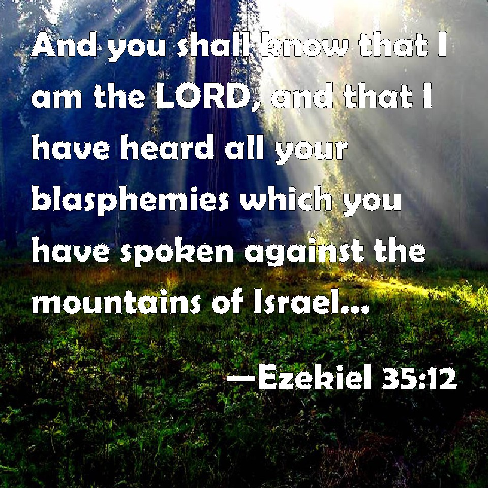 Choose a Background Ezekiel 35:12 And you shall know that I am the LORD, and that I have heard all your blasphemies which you have spoken against the mountains of Israel, saying, They are laid desolate, they are given us to consume. KJV: And thou shalt know that I am the LORD, and that I have heard all thy blasphemies which thou hast spoken against the mountains of Israel, saying, They are laid desolate, they are given us to consume. DRB: And thou shalt know that I the Lord have heard all thy reproaches, that thou hast spoken against the mountains of Israel, saying: They are desolate, they are given to us to consume. DBT: And thou shalt know that I Jehovah have heard all thy reproaches, which thou hast uttered against the mountains of Israel, saying, They are laid desolate, they are given us to devour. ERV: And thou shalt know that I the LORD have heard all thy blasphemies which thou hast spoken against the mountains of Israel, saying, They are laid desolate, they are given us to devour. WBT: And thou shalt know that I am the LORD, and that I have heard all thy blasphemies which thou hast spoken against the mountains of Israel, saying, They are laid desolate, they are given us to consume. WEB: You shall know that I, Yahweh, have heard all your insults which you have spoken against the mountains of Israel, saying, They are laid desolate, they have been given us to devour. YLT: And thou hast known that I — Jehovah, I have heard all thy despisings that thou hast spoken Against mountains of Israel, saying: A desolation, to us they were given for food.Links Ezekiel 35:12 NIV • Ezekiel 35:12 NLT • Ezekiel 35:12 ESV • Ezekiel 35:12 NASB • Ezekiel 35:12 KJV • Ezekiel 35:12 Interlinear • Ezekiel 35:12 Commentaries • Ezekiel 35:12 Parallel Texts • Ezekiel 35:12 Bible Apps • Ezekiel 35:12 Parallel • Bible Hub |