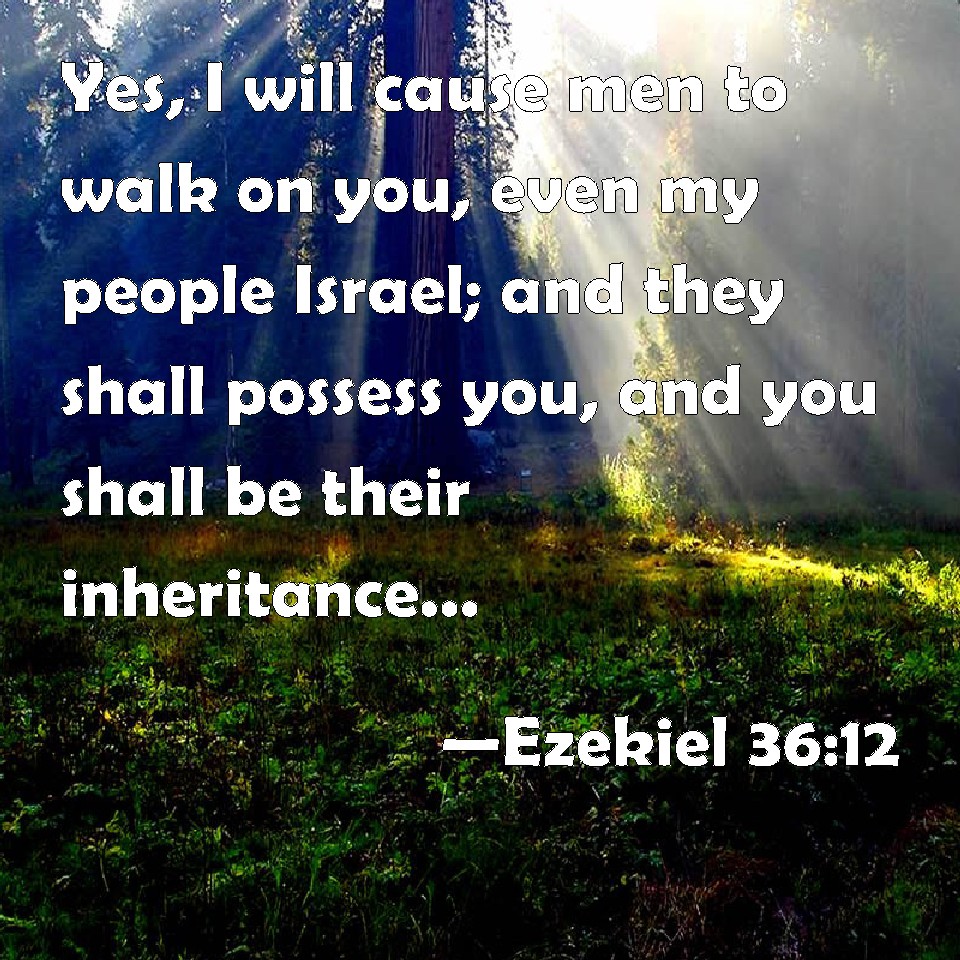 Choose a Background Ezekiel 36:12 Yes, I will cause men to walk on you, even my people Israel; and they shall possess you, and you shall be their inheritance, and you shall no more from now on bereave them of men. KJV: Yea, I will cause men to walk upon you, even my people Israel; and they shall possess thee, and thou shalt be their inheritance, and thou shalt no more henceforth bereave them of men. DRB: And I will bring men upon you, my people Israel, and they shall possess thee for their inheritance: and thou shalt be their inheritance, and shalt no more henceforth be without them. DBT: And I will cause men to walk upon you, even my people Israel; and they shall possess thee, and thou shalt be their inheritance, and thou shalt no more henceforth bereave them of children. ERV: Yea, I will cause men to walk upon you, even my people Israel; and they shall possess thee, and thou shalt be their inheritance, and thou shalt no more henceforth bereave them of children. WBT: Yes, I will cause men to walk upon you, even my people Israel; and they shall possess thee, and thou shalt be their inheritance, and thou shalt no more henceforth bereave them of men. WEB: Yes, I will cause men to walk on you, even my people Israel; and they shall possess you, and you shall be their inheritance, and you shall no more henceforth bereave them of children. YLT: And I have caused man to walk over you, — My people Israel, And they possess thee, and thou hast been to them for an inheritance, And thou dost add no more to bereave them.Links Ezekiel 36:12 NIV • Ezekiel 36:12 NLT • Ezekiel 36:12 ESV • Ezekiel 36:12 NASB • Ezekiel 36:12 KJV • Ezekiel 36:12 Interlinear • Ezekiel 36:12 Commentaries • Ezekiel 36:12 Parallel Texts • Ezekiel 36:12 Bible Apps • Ezekiel 36:12 Parallel • Bible Hub |