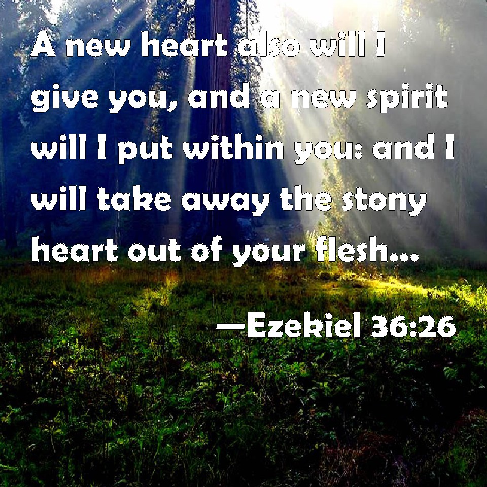 Ezekiel 36:26 A new heart also will I give you, and a new spirit will I put within you: and I will take away the stony heart out of your flesh, and I will give you an heart of flesh.