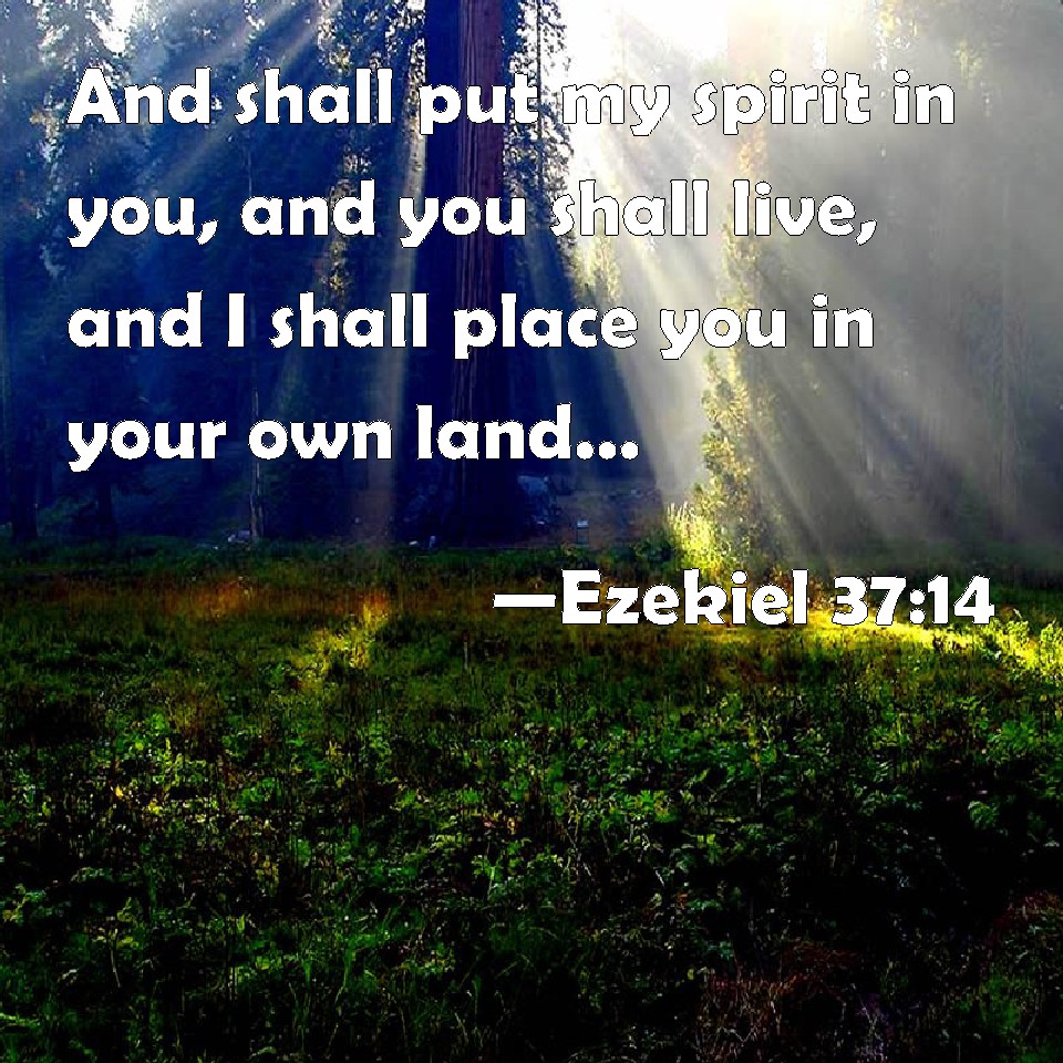 Choose a Background Ezekiel 37:14 And shall put my spirit in you, and you shall live, and I shall place you in your own land: then shall you know that I the LORD have spoken it, and performed it, said the LORD. KJV: And shall put my spirit in you, and ye shall live, and I shall place you in your own land: then shall ye know that I the LORD have spoken it, and performed it, saith the LORD. DRB: And shall have put my spirit in you, and you shall live, and I shall make you rest upon your own land: and you shall know that I the Lord have spoken, and done it, saith the Lord God: DBT: And I will put my Spirit in you, and ye shall live, and I will place you in your own land: and ye shall know that I Jehovah have spoken, and have done it, saith Jehovah. ERV: And I will put my spirit in you, and ye shall live, and I will place you in your own land: and ye shall know that I the LORD have spoken it, and performed it, saith the LORD. WBT: And shall put my spirit in you, and ye shall live, and I shall place you in your own land: then shall ye know that I the LORD have spoken it, and performed it, saith the LORD. WEB: I will put my Spirit in you, and you shall live, and I will place you in your own land: and you shall know that I, Yahweh, have spoken it and performed it, says Yahweh. YLT: And I have given My Spirit in you, and ye have lived, And I have caused you to rest on your land, And ye have known that I Jehovah, I have spoken, and I have done it, An affirmation of Jehovah.'Links Ezekiel 37:14 NIV • Ezekiel 37:14 NLT • Ezekiel 37:14 ESV • Ezekiel 37:14 NASB • Ezekiel 37:14 KJV • Ezekiel 37:14 Interlinear • Ezekiel 37:14 Commentaries • Ezekiel 37:14 Parallel Texts • Ezekiel 37:14 Bible Apps • Ezekiel 37:14 Parallel • Bible Hub |