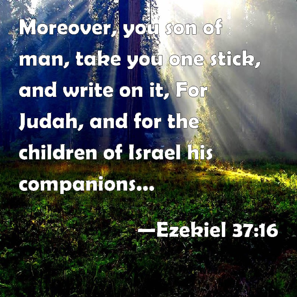 Choose a Background Ezekiel 37:16 Moreover, you son of man, take you one stick, and write on it, For Judah, and for the children of Israel his companions: then take another stick, and write on it, For Joseph, the stick of Ephraim and for all the house of Israel his companions: KJV: Moreover, thou son of man, take thee one stick, and write upon it, For Judah, and for the children of Israel his companions: then take another stick, and write upon it, For Joseph, the stick of Ephraim, and for all the house of Israel his companions: DRB: And thou son of man, take thee a stick: and write upon it: Of Juda, and of the children of Israel his associates: and take another stick and write upon it: For Joseph the stick of Ephraim, and for all the house of Israel, and of his associates. DBT: And thou, son of man, take thee one stick, and write upon it, For Judah, and for the children of Israel, his companions. And take another stick, and write upon it, For Joseph, the stick of Ephraim and all the house of Israel, his companions. ERV: And thou, son of man, take thee one stick, and write upon it, For Judah, and for the children of Israel his companions: then take another stick, and write upon it, For Joseph, the stick of Ephraim, and for all the house of Israel his companions: WBT: Moreover, thou son of man, take thee one stick, and write upon it, For Judah, and for the children of Israel his companions: then take another stick, and write upon it, For Joseph, the stick of Ephraim, and for all the house of Israel his companions: WEB: You, son of man, take one stick, and write on it, For Judah, and for the children of Israel his companions: then take another stick, and write on it, For Joseph, the stick of Ephraim, and [for] all the house of Israel his companions: YLT: 'And thou, son of man, take to thee one stick, and write on it, For Judah, and for the sons of Israel, his companions; and take another stick, and write on it, For Joseph, the stick of Ephraim, and all the house of Israel, his companions,Links Ezekiel 37:16 NIV • Ezekiel 37:16 NLT • Ezekiel 37:16 ESV • Ezekiel 37:16 NASB • Ezekiel 37:16 KJV • Ezekiel 37:16 Interlinear • Ezekiel 37:16 Commentaries • Ezekiel 37:16 Parallel Texts • Ezekiel 37:16 Bible Apps • Ezekiel 37:16 Parallel • Bible Hub |