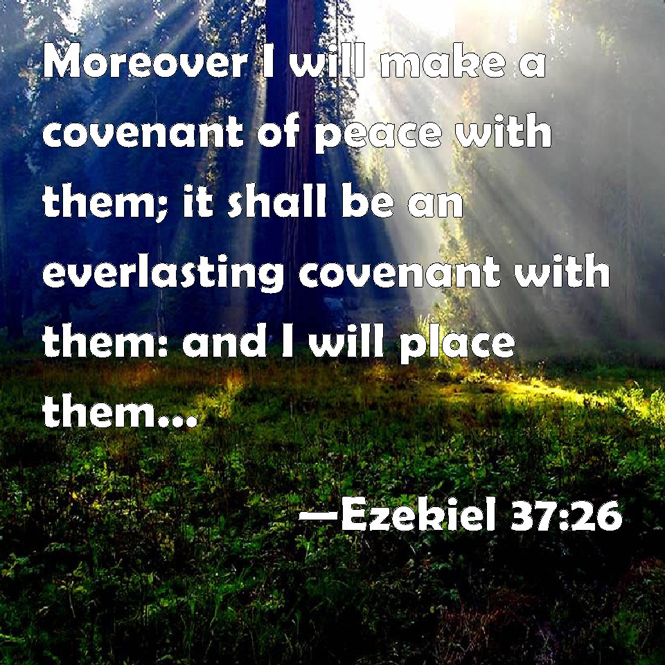 Choose a Background Ezekiel 37:26 Moreover I will make a covenant of peace with them; it shall be an everlasting covenant with them: and I will place them, and multiply them, and will set my sanctuary in the middle of them for ever more. KJV: Moreover I will make a covenant of peace with them; it shall be an everlasting covenant with them: and I will place them, and multiply them, and will set my sanctuary in the midst of them for evermore. DRB: And I will make a covenant of peace with them, it shall be an everlasting covenant with them : and I will establish them, and will multiply them, and will set my sanctuary in the midst of them for ever. DBT: And I will make a covenant of peace with them: it shall be an everlasting covenant with them; and I will place them, and multiply them, and will set my sanctuary in the midst of them for ever. ERV: Moreover I will make a covenant of peace with them: it shall be an everlasting covenant with them: and I will place them, and multiply them, and will set my sanctuary in the midst of them for evermore. WBT: Moreover I will make a covenant of peace with them; it shall be an everlasting covenant with them: and I will place them, and multiply them, and will set my sanctuary in the midst of them for evermore. WEB: Moreover I will make a covenant of peace with them; it shall be an everlasting covenant with them; and I will place them, and multiply them, and will set my sanctuary in the midst of them forevermore. YLT: And I have made to them a covenant of peace, A covenant age-during it is with them, And I have placed them, and multiplied them, And placed My sanctuary in their midst — to the age.Links Ezekiel 37:26 NIV • Ezekiel 37:26 NLT • Ezekiel 37:26 ESV • Ezekiel 37:26 NASB • Ezekiel 37:26 KJV • Ezekiel 37:26 Interlinear • Ezekiel 37:26 Commentaries • Ezekiel 37:26 Parallel Texts • Ezekiel 37:26 Bible Apps • Ezekiel 37:26 Parallel • Bible Hub |