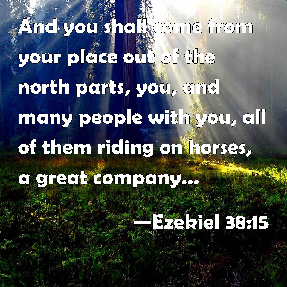 Choose a Background Ezekiel 38:15 And you shall come from your place out of the north parts, you, and many people with you, all of them riding on horses, a great company, and a mighty army: KJV: And thou shalt come from thy place out of the north parts, thou, and many people with thee, all of them riding upon horses, a great company, and a mighty army: DRB: And then shalt come out of thy place from the northern parts, thou and many people with thee, all of them riding upon horses, a great company and a mighty army. DBT: And thou shalt come from thy place out of the uttermost north, thou and many peoples with thee, all of them riding upon horses, a great assemblage and a mighty army. ERV: And thou shalt come from thy place out of the uttermost parts of the north, thou, and many peoples with thee, all of them riding upon horses; a great company and a mighty army: WBT: And thou shalt come from thy place out of the north parts, thou, and many people with thee, all of them riding upon horses, a great company, and a mighty army: WEB: You shall come from your place out of the uttermost parts of the north, you, and many peoples with you, all of them riding on horses, a great company and a mighty army; YLT: And thou hast come in out of thy place, From the sides of the north, Thou and many peoples with thee, Riding on horses — all of them, A great assembly, and a numerous force.Links Ezekiel 38:15 NIV • Ezekiel 38:15 NLT • Ezekiel 38:15 ESV • Ezekiel 38:15 NASB • Ezekiel 38:15 KJV • Ezekiel 38:15 Interlinear • Ezekiel 38:15 Commentaries • Ezekiel 38:15 Parallel Texts • Ezekiel 38:15 Bible Apps • Ezekiel 38:15 Parallel • Bible Hub |