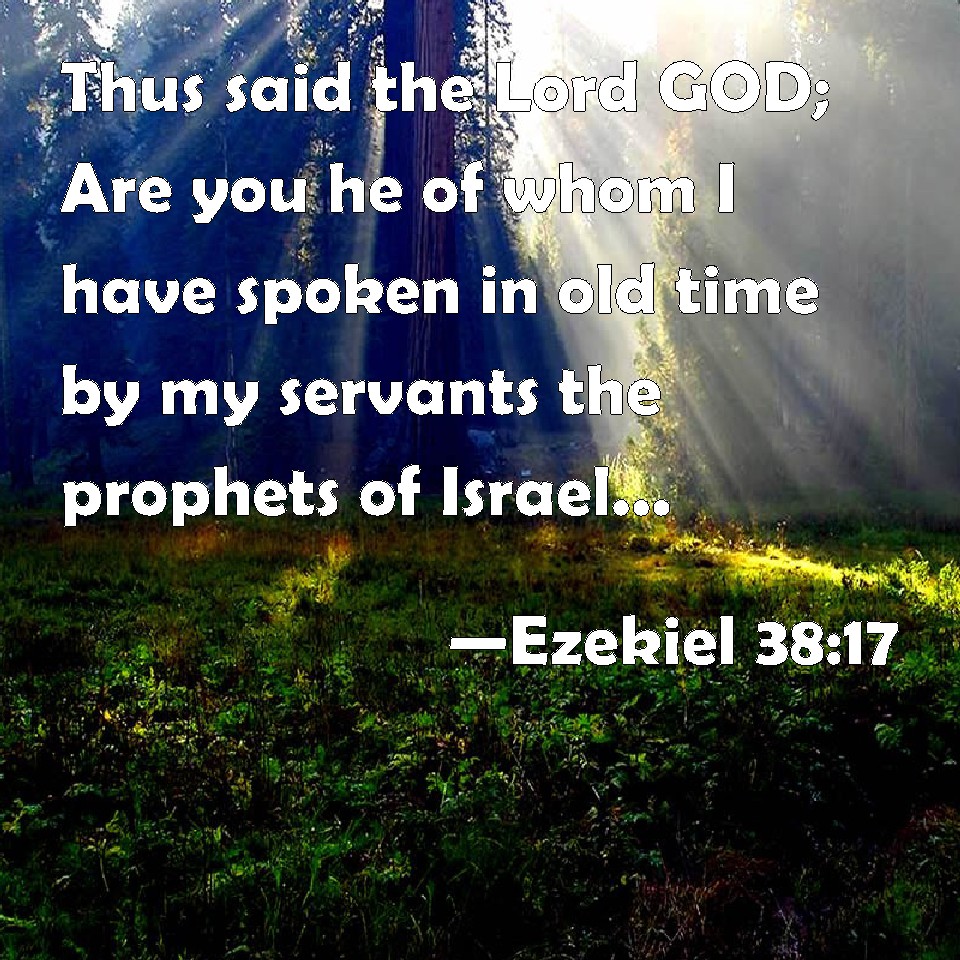 Choose a Background Ezekiel 38:17 Thus said the Lord GOD; Are you he of whom I have spoken in old time by my servants the prophets of Israel, which prophesied in those days many years that I would bring you against them? KJV: Thus saith the Lord GOD; Art thou he of whom I have spoken in old time by my servants the prophets of Israel, which prophesied in those days many years that I would bring thee against them? DRB: Thus saith the Lord God: Thou then art he, of whom I have spoken in the days of old, by my servants the prophets of Israel, who prophesied in the days of those times that I would bring thee upon them. DBT: Thus saith the Lord Jehovah: Art thou not he of whom I have spoken in old time through my servants the prophets of Israel, who prophesied in those days, for many years, that I would bring thee against them? ERV: Thus saith the Lord GOD: Art thou he of whom I spake in old time by my servants the prophets of Israel, which prophesied in those days for many years that I would bring thee against them? WBT: Thus saith the Lord GOD; Art thou he of whom I have spoken in old time by my servants the prophets of Israel, who prophesied in those days many years, that I would bring thee against them? WEB: Thus says the Lord Yahweh: Are you he of whom I spoke in old time by my servants the prophets of Israel, who prophesied in those days for [many] years that I would bring you against them? YLT: Thus said the Lord Jehovah: Art thou he of whom I spake in former days, By the hand of My servants, prophets of Israel, Who are prophesying in those days — years, To bring thee in against them?Links Ezekiel 38:17 NIV • Ezekiel 38:17 NLT • Ezekiel 38:17 ESV • Ezekiel 38:17 NASB • Ezekiel 38:17 KJV • Ezekiel 38:17 Interlinear • Ezekiel 38:17 Commentaries • Ezekiel 38:17 Parallel Texts • Ezekiel 38:17 Bible Apps • Ezekiel 38:17 Parallel • Bible Hub |