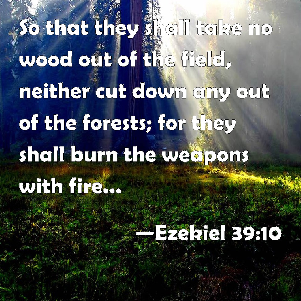 Choose a Background Ezekiel 39:10 So that they shall take no wood out of the field, neither cut down any out of the forests; for they shall burn the weapons with fire: and they shall spoil those that spoiled them, and rob those that robbed them, said the Lord GOD. KJV: So that they shall take no wood out of the field, neither cut down any out of the forests; for they shall burn the weapons with fire: and they shall spoil those that spoiled them, and rob those that robbed them, saith the Lord GOD. DRB: And they shall not bring wood out of the countries, nor cut down out of the forests: for they shall burn the weapons with fire, and shall make a prey of them to whom they had been a prey, and they shall rob those that robbed them, saith the Lord God. DBT: And no wood shall be taken out of the field, neither cut down out of the forests; for they shall make fire with the weapons; and they shall spoil those that spoiled them, and plunder those that plundered them, saith the Lord Jehovah. ERV: so that they shall take no wood out of the field, neither cut down any out of the forests; for they shall make fires of the weapons: and they shall spoil those that spoiled them, and rob those that robbed them, saith the Lord GOD. WBT: So that they shall take no wood out of the field, neither cut down any out of the forests; for they shall burn the weapons with fire: and they shall lay waste those that wasted them, and rob those that robbed them, saith the Lord GOD. WEB: so that they shall take no wood out of the field, neither cut down any out of the forests; for they shall make fires of the weapons; and they shall plunder those who plundered them, and rob those who robbed them, says the Lord Yahweh. YLT: And they do not take wood out of the field, Nor do they hew out of the forests, For with armour they cause the fire to burn, And they have spoiled their spoilers, And they have plundered their plunderers, An affirmation of the Lord Jehovah.Links Ezekiel 39:10 NIV • Ezekiel 39:10 NLT • Ezekiel 39:10 ESV • Ezekiel 39:10 NASB • Ezekiel 39:10 KJV • Ezekiel 39:10 Interlinear • Ezekiel 39:10 Commentaries • Ezekiel 39:10 Parallel Texts • Ezekiel 39:10 Bible Apps • Ezekiel 39:10 Parallel • Bible Hub |