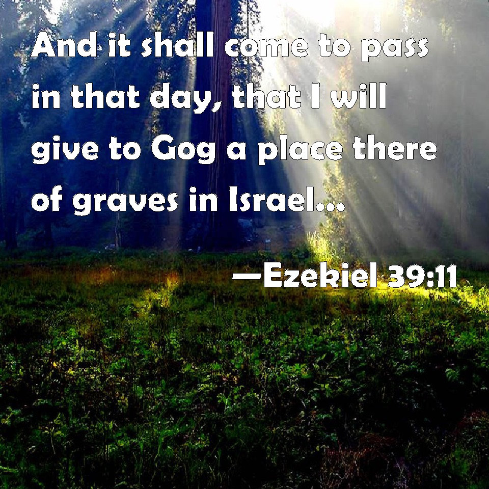And it shall come to pass in that day, that I will give unto Gog a place for burial in Israel, the valley of them that pass through on the east of the sea: and it shall stop them that pass through: and there shall they bury Gog and all his multitude: and they shall call it The valley of Hamon-gog.