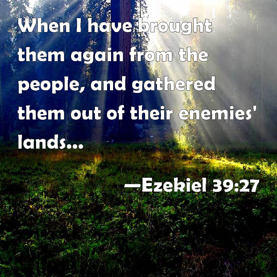 Choose a Background Ezekiel 39:27 When I have brought them again from the people, and gathered them out of their enemies' lands, and am sanctified in them in the sight of many nations; KJV: When I have brought them again from the people, and gathered them out of their enemies' lands, and am sanctified in them in the sight of many nations; DRB: And I shall have brought them back from among the nations, and shall have gathered them together out of the lands of their enemies, and shall be sanctified in them, in the sight of many nations. DBT: when I have brought them again from the peoples, and gathered them out of their enemies' lands, and am hallowed in them in the sight of many nations. ERV: when I have brought them again from the peoples, and gathered them out of their enemies' lands, and am sanctified in them in the sight of many nations. WBT: When I have brought them again from the people, and gathered them out of the lands of their enemies, and am sanctified in them in the sight of many nations; WEB: when I have brought them back from the peoples, and gathered them out of their enemies' lands, and am sanctified in them in the sight of many nations. YLT: In My bringing them back from the peoples, I have assembled them from the lands of their enemies, And I have been sanctified in them before the eyes of the many nations,Links Ezekiel 39:27 NIV • Ezekiel 39:27 NLT • Ezekiel 39:27 ESV • Ezekiel 39:27 NASB • Ezekiel 39:27 KJV • Ezekiel 39:27 Interlinear • Ezekiel 39:27 Commentaries • Ezekiel 39:27 Parallel Texts • Ezekiel 39:27 Bible Apps • Ezekiel 39:27 Parallel • Bible Hub |