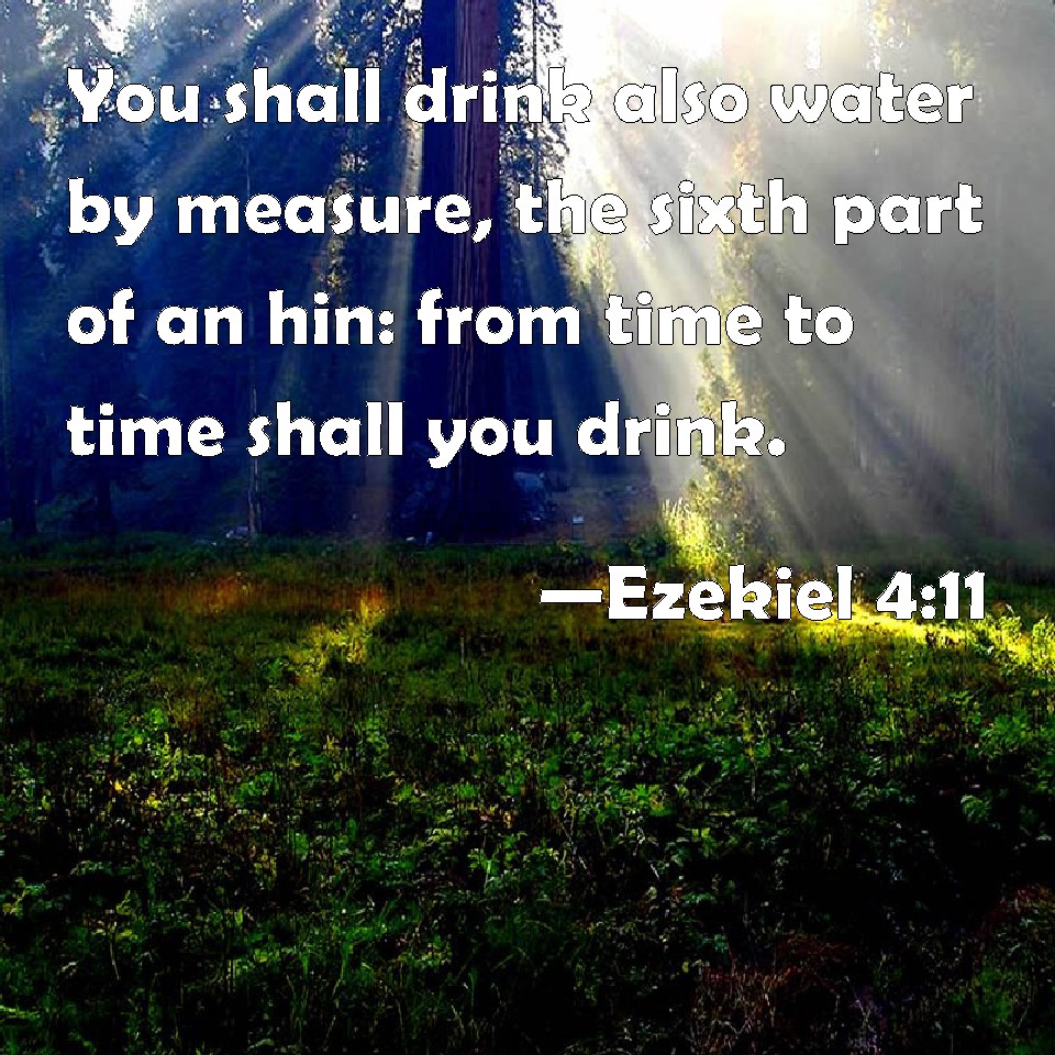 Ezekiel 4:11 You shall drink also water by measure, the sixth part of an hin: from time to time shall you drink.