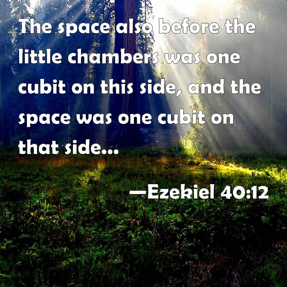 Choose a Background Ezekiel 40:12 The space also before the little chambers was one cubit on this side, and the space was one cubit on that side: and the little chambers were six cubits on this side, and six cubits on that side. KJV: The space also before the little chambers was one cubit on this side, and the space was one cubit on that side: and the little chambers were six cubits on this side, and six cubits on that side. DRB: And the border before the little chambers one cubit: and one cubit was the border on both sides: and the little chambers were six cubits on this side and that side. DBT: And there was a border before the chambers of one cubit, and a border of one cubit on the other side; and the chambers were six cubits on this side, and six cubits on that side. ERV: and a border before the lodges one cubit on this side, and a border, one cubit on that side; and the lodges six cubits on this side, and six cubit on that side. WBT: The space also before the little chambers was one cubit on this side, and the space was one cubit on that side: and the little chambers were six cubits on this side, and six cubits on that side. WEB: and a border before the lodges, one cubit [on this side], and a border, one cubit on that side; and the lodges, six cubits on this side, and six cubits on that side. YLT: and a border before the little chambers, one cubit, and one cubit is the border on this side, and the little chamber is six cubits on this side, and six cubits on that side.Links Ezekiel 40:12 NIV • Ezekiel 40:12 NLT • Ezekiel 40:12 ESV • Ezekiel 40:12 NASB • Ezekiel 40:12 KJV • Ezekiel 40:12 Interlinear • Ezekiel 40:12 Commentaries • Ezekiel 40:12 Parallel Texts • Ezekiel 40:12 Bible Apps • Ezekiel 40:12 Parallel • Bible Hub |