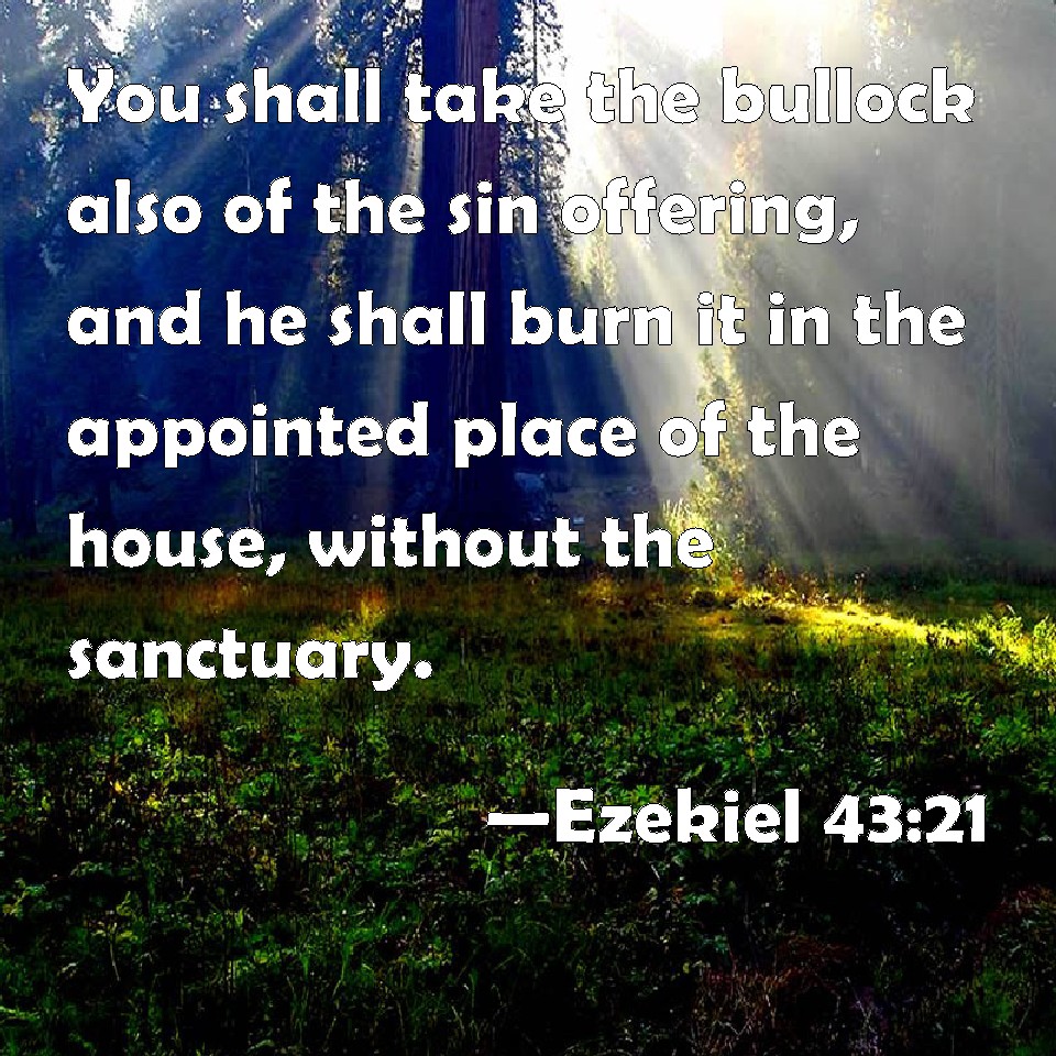 Choose a Background Ezekiel 43:21 You shall take the bullock also of the sin offering, and he shall burn it in the appointed place of the house, without the sanctuary. KJV: Thou shalt take the bullock also of the sin offering, and he shall burn it in the appointed place of the house, without the sanctuary. DRB: And thou shalt take the calf, that is offered for sin: and thou shalt burn him in a separate place of the house without the sanctuary. DBT: And thou shalt take the bullock of the sin-offering, and it shall be burned in the appointed place of the house, outside the sanctuary. ERV: Thou shalt also take the bullock of the sin offering, and he shall burn it in the appointed place of the house, without the sanctuary. WBT: Thou shalt take the bullock also of the sin-offering, and he shall burn it in the appointed place of the house, without the sanctuary. WEB: You shall also take the bull of the sin offering, and it shall be burnt in the appointed place of the house, outside of the sanctuary. YLT: And thou hast taken the bullock of the sin-offering, and hast burnt it in the appointed place of the house at the outside of the sanctuary.Links Ezekiel 43:21 NIV • Ezekiel 43:21 NLT • Ezekiel 43:21 ESV • Ezekiel 43:21 NASB • Ezekiel 43:21 KJV • Ezekiel 43:21 Interlinear • Ezekiel 43:21 Commentaries • Ezekiel 43:21 Parallel Texts • Ezekiel 43:21 Bible Apps • Ezekiel 43:21 Parallel • Bible Hub |