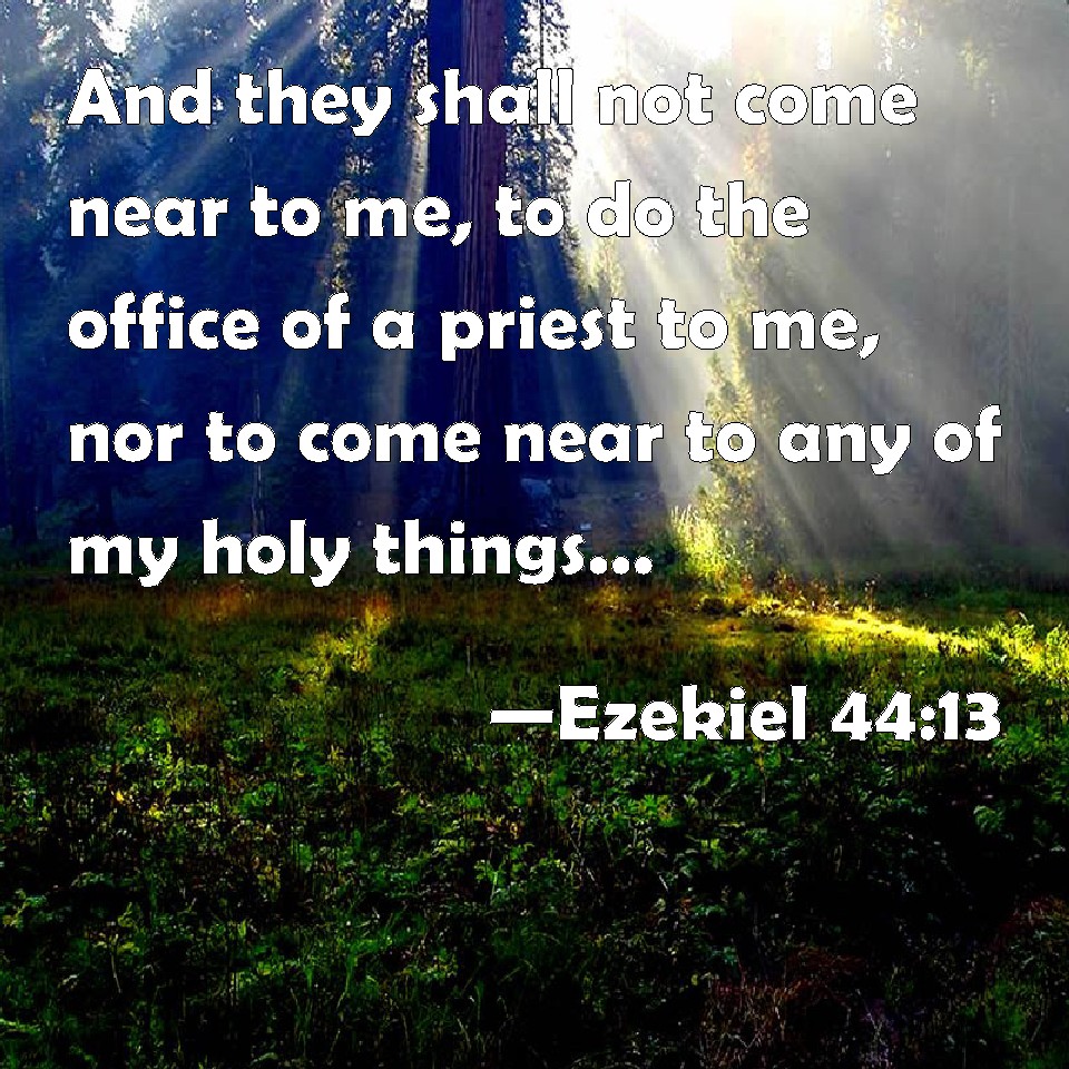 Choose a Background Ezekiel 44:13 And they shall not come near to me, to do the office of a priest to me, nor to come near to any of my holy things, in the most holy place: but they shall bear their shame, and their abominations which they have committed. KJV: And they shall not come near unto me, to do the office of a priest unto me, nor to come near to any of my holy things, in the most holy place: but they shall bear their shame, and their abominations which they have committed. DRB: And they shall not come near to me to do the office of priest to me, neither shall they come near to any of my holy things that are by the holy of holies: but they shall bear their shame, and their wickednesses which they have committed. DBT: And they shall not draw near unto me, to do the office of a priest unto me, nor to draw near to any of my holy things, even to the most holy; but they shall bear their confusion, and their abominations which they have committed. ERV: And they shall not come near unto me, to execute the office of priest unto me, nor to come near to any of my holy things, unto the things that are most holy: but they shall bear their shame, and their abominations which they have committed. WBT: And they shall not come near to me, to do the office of a priest to me, nor to come near to any of my holy things, in the most holy place: but they shall bear their shame, and their abominations which they have committed. WEB: They shall not come near to me, to execute the office of priest to me, nor to come near to any of my holy things, to the things that are most holy; but they shall bear their shame, and their abominations which they have committed. YLT: And they draw not nigh unto Me to act as My priest, and to draw nigh unto any of My holy things, unto the holy of holies, and they have borne their shame and their abominations that they have done,Links Ezekiel 44:13 NIV • Ezekiel 44:13 NLT • Ezekiel 44:13 ESV • Ezekiel 44:13 NASB • Ezekiel 44:13 KJV • Ezekiel 44:13 Interlinear • Ezekiel 44:13 Commentaries • Ezekiel 44:13 Parallel Texts • Ezekiel 44:13 Bible Apps • Ezekiel 44:13 Parallel • Bible Hub |