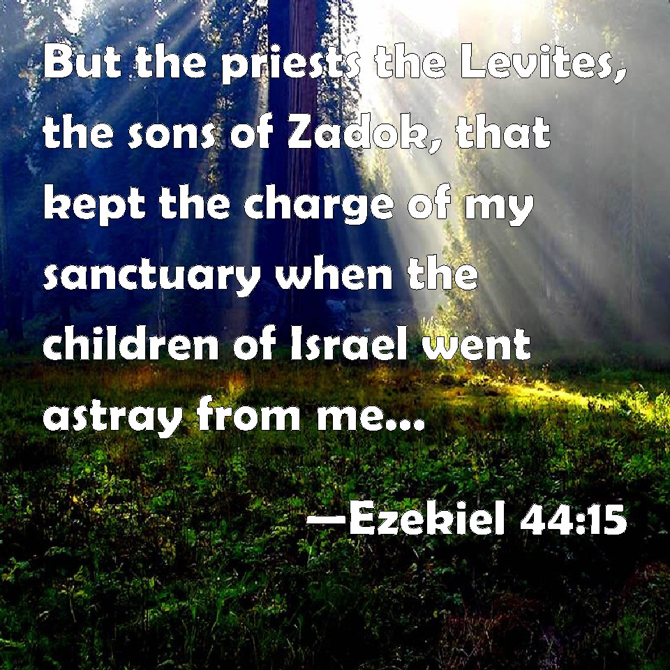 Choose a Background Ezekiel 44:15 But the priests the Levites, the sons of Zadok, that kept the charge of my sanctuary when the children of Israel went astray from me, they shall come near to me to minister to me, and they shall stand before me to offer to me the fat and the blood, said the Lord GOD: KJV: But the priests the Levites, the sons of Zadok, that kept the charge of my sanctuary when the children of Israel went astray from me, they shall come near to me to minister unto me, and they shall stand before me to offer unto me the fat and the blood, saith the Lord GOD: DRB: But the priests, and Levites, the sons of Sadoc, who kept the ceremonies or my sanctuary, when the children of Israel went astray from me, they shall come near to me, to minister to me: and they shall stand before me, to offer me the fat, and the blood, saith the Lord God. DBT: But the priests, the Levites, the sons of Zadok, that kept the charge of my sanctuary when the children of Israel went astray from me, they shall approach unto me to minister unto me, and they shall stand before me to present unto me the fat and the blood, saith the Lord Jehovah. ERV: But the priests the Levites, the sons of Zadok, that kept the charge of my sanctuary when the children of Israel went astray from me, they shall come near to me to minister unto me; and they shall stand before me to offer unto me the fat and the blood, saith the Lord GOD: WBT: But the priests the Levites, the sons of Zadok, that kept the charge of my sanctuary when the children of Israel went astray from me, they shall come near to me to minister to me, and they shall stand before me to offer to me the fat and the blood, saith the Lord GOD: WEB: But the priests the Levites, the sons of Zadok, who performed the duty of my sanctuary when the children of Israel went astray from me, they shall come near to me to minister to me; and they shall stand before me to offer to me the fat and the blood, says the Lord Yahweh: YLT: And the priests, the Levites, sons of Zadok, who have kept the charge of My sanctuary in the wandering of the sons of Israel from off Me, they draw near unto Me to serve Me, and have stood before Me, to bring near to Me fat and blood — an affirmation of the Lord Jehovah:Links Ezekiel 44:15 NIV • Ezekiel 44:15 NLT • Ezekiel 44:15 ESV • Ezekiel 44:15 NASB • Ezekiel 44:15 KJV • Ezekiel 44:15 Interlinear • Ezekiel 44:15 Commentaries • Ezekiel 44:15 Parallel Texts • Ezekiel 44:15 Bible Apps • Ezekiel 44:15 Parallel • Bible Hub |