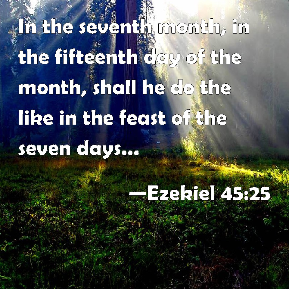 Choose a Background Ezekiel 45:25 In the seventh month, in the fifteenth day of the month, shall he do the like in the feast of the seven days, according to the sin offering, according to the burnt offering, and according to the meat offering, and according to the oil. KJV: In the seventh month, in the fifteenth day of the month, shall he do the like in the feast of the seven days, according to the sin offering, according to the burnt offering, and according to the meat offering, and according to the oil. DRB: In the seventh month, in the fifteenth day of the month, in the solemn feast, he shall do the like for the seven days: as well in regard to the sin offering, as to the holocaust, and. the sacrifice, and the DBT: In the seventh month, on the fifteenth day of the month, at the feast, shall he do the like seven days, according to the sin-offering, according to the burnt-offering, and according to the oblation, and according to the oil. ERV: In the seventh month, in the fifteenth day of the month, in the feast, shall he do the like the seven days; according to the sin offering, according to the burnt offering, and according to the meal offering, and according to the oil. WBT: In the seventh month, in the fifteenth day of the month, shall he do the like in the feast of the seven days, according to the sin-offering, according to the burnt-offering, and according to the meat-offering, and according to the oil. WEB: In the seventh [month], in the fifteenth day of the month, in the feast, shall he do the like the seven days; according to the sin offering, according to the burnt offering, and according to the meal offering, and according to the oil. YLT: In the seventh month, in the fifteenth day of the month, in the feast, he doth according to these things seven days; as the sin-offering so the burnt-offering, and as the present so also the oil.Links Ezekiel 45:25 NIV • Ezekiel 45:25 NLT • Ezekiel 45:25 ESV • Ezekiel 45:25 NASB • Ezekiel 45:25 KJV • Ezekiel 45:25 Interlinear • Ezekiel 45:25 Commentaries • Ezekiel 45:25 Parallel Texts • Ezekiel 45:25 Bible Apps • Ezekiel 45:25 Parallel • Bible Hub |