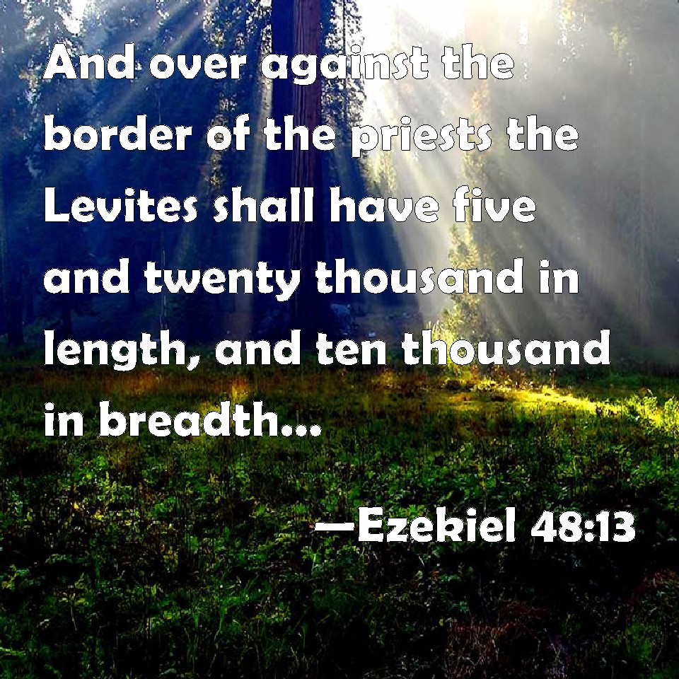 Ezekiel 48:13 And over against the border of the priests the Levites shall have five and twenty thousand in length, and ten thousand in breadth: all the length shall be five and twenty thousand, and the breadth ten thousand.