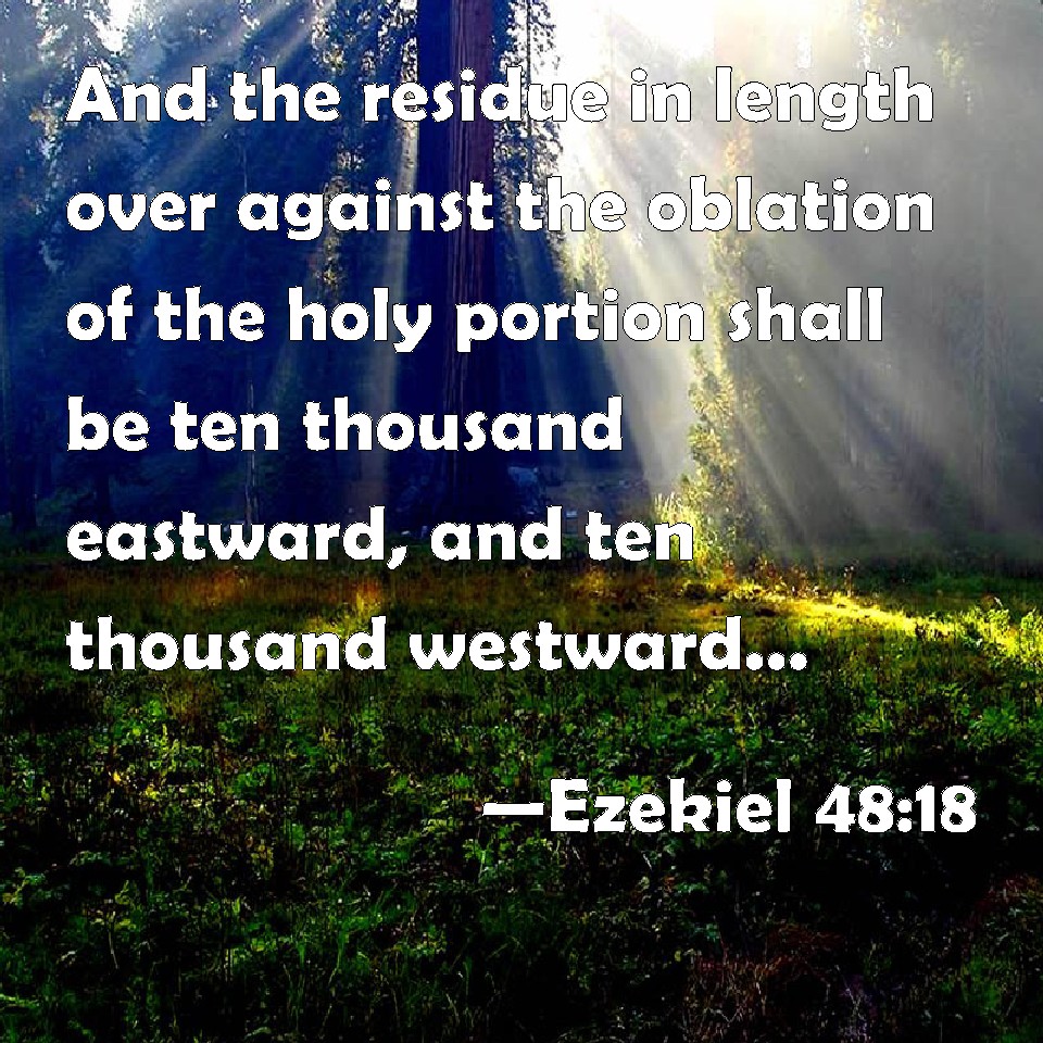 Ezekiel 48:18 And the residue in length over against the oblation of the holy portion shall be ten thousand eastward, and ten thousand westward: and it shall be over against the oblation of the holy portion; and the increase thereof shall be for food to them that serve the city.