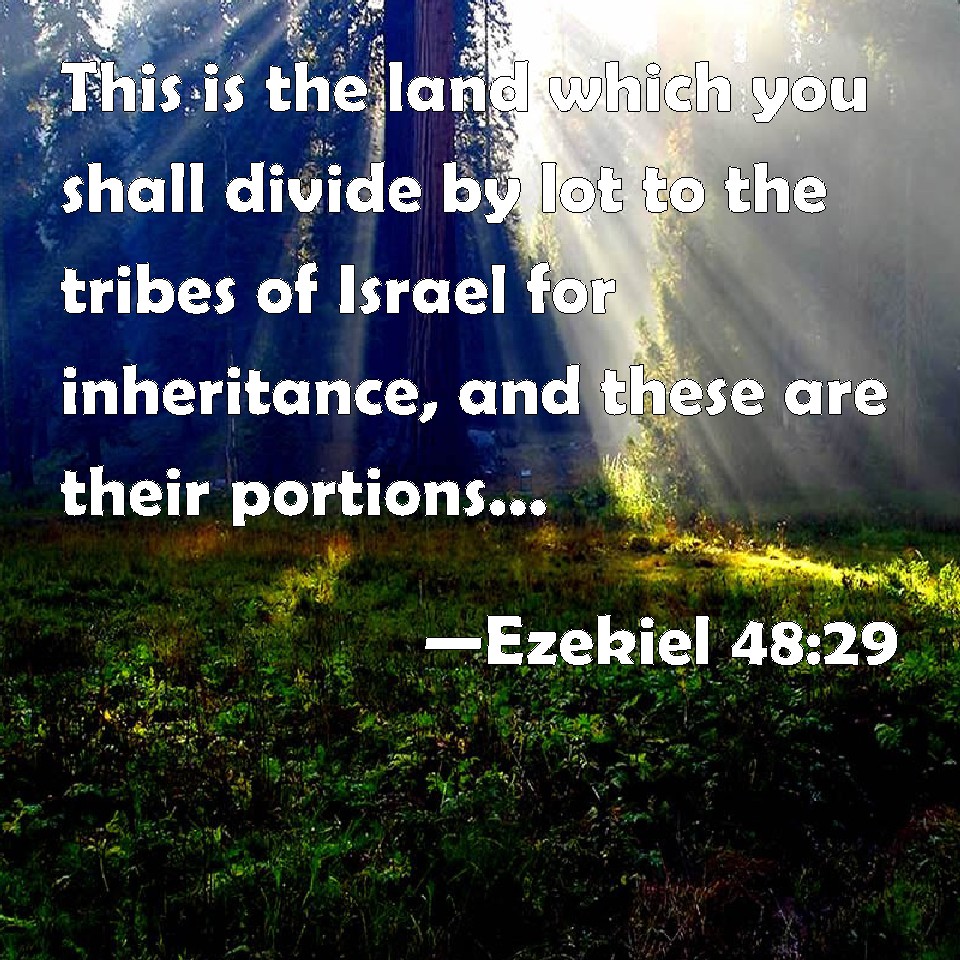 Choose a Background Ezekiel 48:29 This is the land which you shall divide by lot to the tribes of Israel for inheritance, and these are their portions, said the Lord GOD. KJV: This is the land which ye shall divide by lot unto the tribes of Israel for inheritance, and these are their portions, saith the Lord GOD. DRB: This is the land which you shall divide by lot to the tribes of Israel: and these are the portions of them, saith the Lord God. DBT: This is the land which ye shall divide by lot unto the tribes of Israel for inheritance, and these are their portions, saith the Lord Jehovah. ERV: This is the land which ye shall divide by lot unto the tribes of Israel for inheritance, and these are their several portions, saith the Lord GOD. WBT: This is the land which ye shall divide by lot to the tribes of Israel for inheritance, and these are their portions, saith the Lord GOD. WEB: This is the land which you shall divide by lot to the tribes of Israel for inheritance, and these are their several portions, says the Lord Yahweh. YLT: This is the land that ye separate by inheritance to the tribes of Israel, and these are their portions — an affirmation of the Lord Jehovah.Links Ezekiel 48:29 NIV • Ezekiel 48:29 NLT • Ezekiel 48:29 ESV • Ezekiel 48:29 NASB • Ezekiel 48:29 KJV • Ezekiel 48:29 Interlinear • Ezekiel 48:29 Commentaries • Ezekiel 48:29 Parallel Texts • Ezekiel 48:29 Bible Apps • Ezekiel 48:29 Parallel • Bible Hub |