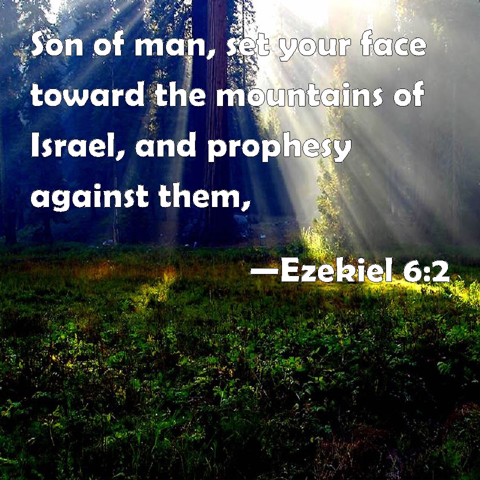 Choose a Background Ezekiel 6:2 Son of man, set your face toward the mountains of Israel, and prophesy against them, KJV: Son of man, set thy face toward the mountains of Israel, and prophesy against them, DRB: Son of man, set thy face towards the mountains of Israel, and prophesy against them. DBT: Son of man, set thy face toward the mountains of Israel, and prophesy against them, ERV: Son of man, set thy face toward the mountains of Israel, and prophesy unto them, WBT: Son of man, set thy face towards the mountains of Israel, and prophesy against them, WEB: Son of man, set your face toward the mountains of Israel, and prophesy to them, YLT: 'Son of man, set thy face unto mountains of Israel, and prophesy concerning them:Links Ezekiel 6:2 NIV • Ezekiel 6:2 NLT • Ezekiel 6:2 ESV • Ezekiel 6:2 NASB • Ezekiel 6:2 KJV • Ezekiel 6:2 Interlinear • Ezekiel 6:2 Commentaries • Ezekiel 6:2 Parallel Texts • Ezekiel 6:2 Bible Apps • Ezekiel 6:2 Parallel • Bible Hub |