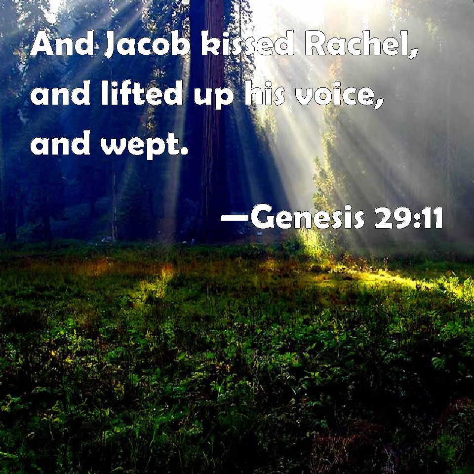 Choose a Background Genesis 29:11 And Jacob kissed Rachel, and lifted up his voice, and wept. KJV: And Jacob kissed Rachel, and lifted up his voice, and wept. DRB: And having watered the flock, he kissed her: and lifting up his voice, wept. DBT: And Jacob kissed Rachel, and lifted up his voice and wept. ERV: And Jacob kissed Rachel, and lifted up his voice, and wept. WBT: And Jacob kissed Rachel, and lifted up his voice, and wept. WEB: Jacob kissed Rachel, and lifted up his voice, and wept. YLT: And Jacob kisseth Rachel, and lifteth up his voice, and weepeth,Links Genesis 29:11 NIV • Genesis 29:11 NLT • Genesis 29:11 ESV • Genesis 29:11 NASB • Genesis 29:11 KJV • Genesis 29:11 Interlinear • Genesis 29:11 Commentaries • Genesis 29:11 Parallel Texts • Genesis 29:11 Bible Apps • Genesis 29:11 Parallel • Bible Hub |