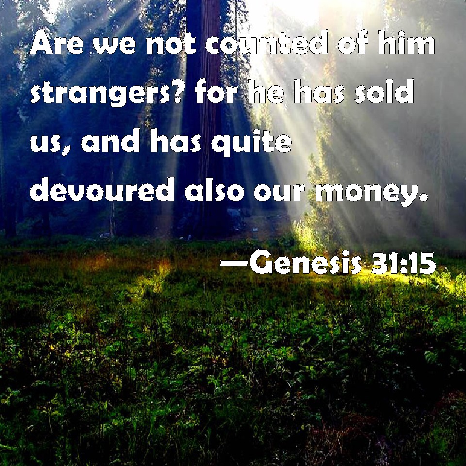 Genesis 31:15 Are we not counted of him strangers? for he has sold us, and has quite devoured also our money.