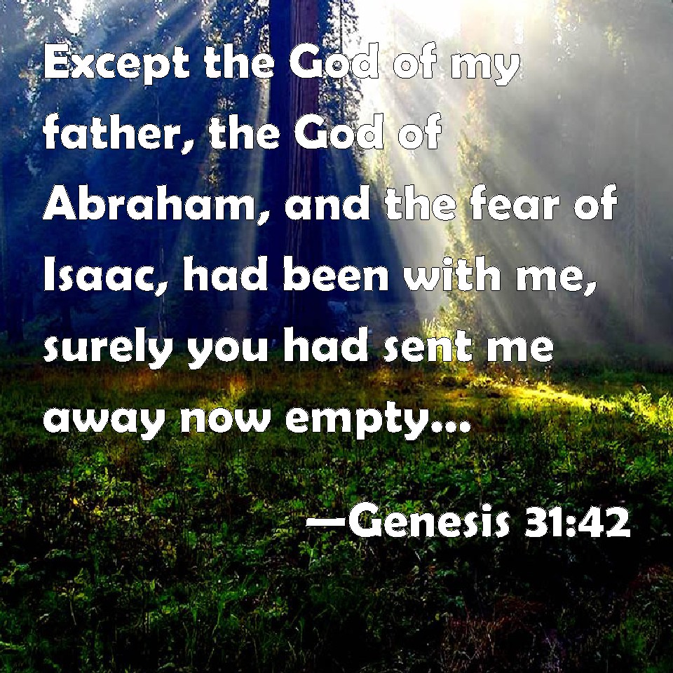 Choose a Background Genesis 31:42 Except the God of my father, the God of Abraham, and the fear of Isaac, had been with me, surely you had sent me away now empty. God has seen my affliction and the labor of my hands, and rebuked you last night. KJV: Except the God of my father, the God of Abraham, and the fear of Isaac, had been with me, surely thou hadst sent me away now empty. God hath seen mine affliction and the labour of my hands, and rebuked thee yesternight. DRB: Unless the God of my father Abraham, and the fear of Isaac had stood by me, peradventure now thou hadst sent me away naked: God beheld my affliction and the labour of my hands, and rebuked thee yesterday. DBT: Had not the God of my father, the God of Abraham, and the fear of Isaac, been with me, it is certain thou wouldest have sent me away now empty. God has looked upon my affliction and the labour of my hands, and has judged last night. ERV: Except the God of my father, the God of Abraham, and the Fear of Isaac, had been with me, surely now hadst thou sent me away empty. God hath seen mine affliction and the labour of my hands, and rebuked thee yesternight. WBT: Except the God of my father, the God of Abraham, and the fear of Isaac had been with me, surely thou hadst now sent me away empty. God hath seen my affliction, and the labor of my hands, and rebuked thee yesternight. WEB: Unless the God of my father, the God of Abraham, and the fear of Isaac, had been with me, surely now you would have sent me away empty. God has seen my affliction and the labor of my hands, and rebuked you last night." YLT: unless the God of my father, the God of Abraham, and the Fear of Isaac, had been for me, surely now empty thou hadst sent me away; mine affliction and the labour of my hands hath God seen, and reproveth yesternight.'Links Genesis 31:42 NIV • Genesis 31:42 NLT • Genesis 31:42 ESV • Genesis 31:42 NASB • Genesis 31:42 KJV • Genesis 31:42 Interlinear • Genesis 31:42 Commentaries • Genesis 31:42 Parallel Texts • Genesis 31:42 Bible Apps • Genesis 31:42 Parallel • Bible Hub |
