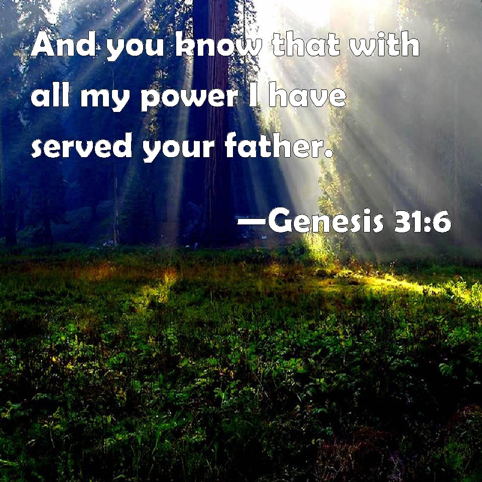 Genesis 31:6 And you know that with all my power I have served your father.